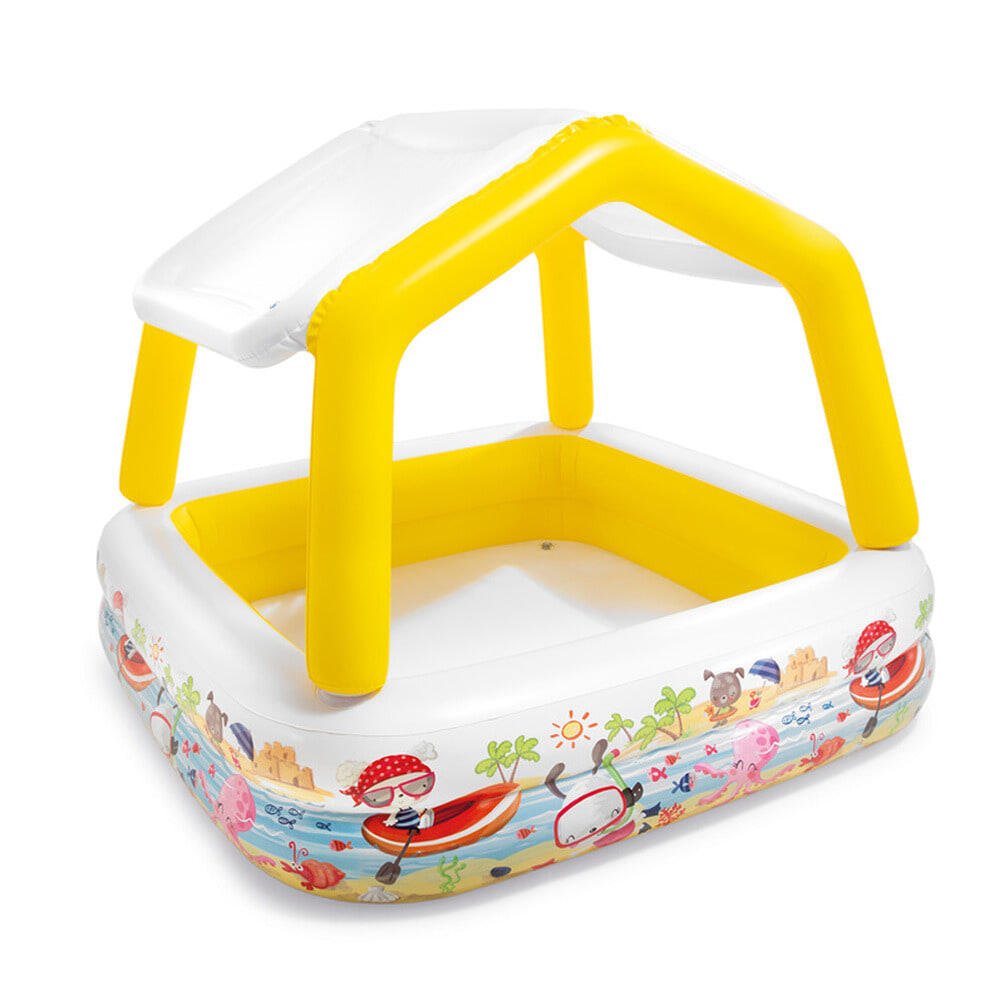 タコやお魚のかわいいデザインに注目!サンシェード付きなので日差しの強い日も安心です。サンシェードは面ファスナーで取り外しが可能です。商品には修理パッチが同梱されています。必要箇所に貼ってご使用ください。