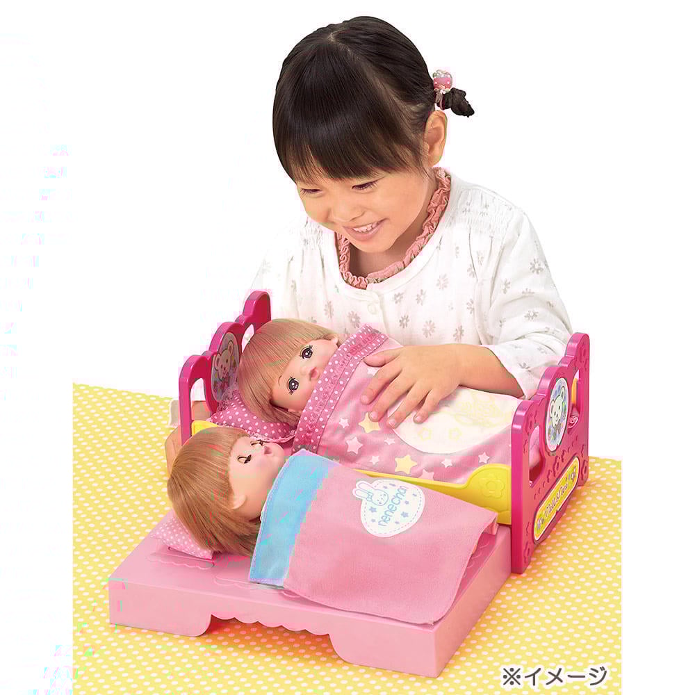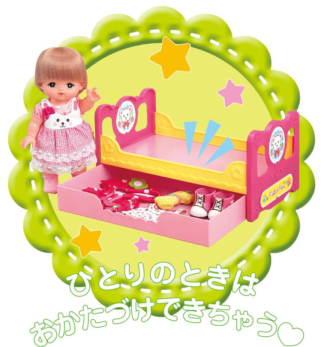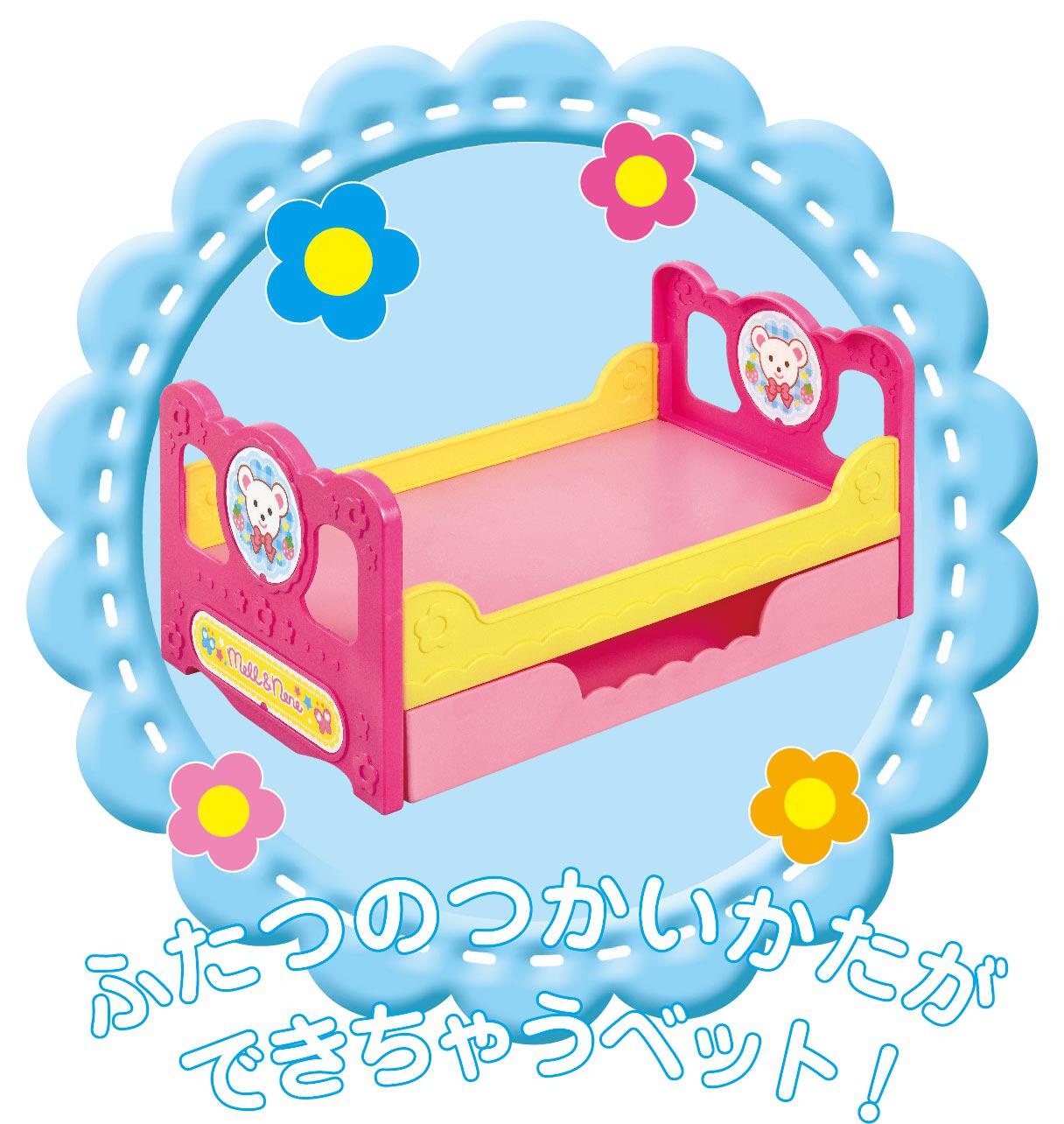 メルちゃんのベッドが新しくなったよ!ベッドひとつで、2パターンの遊びができるよ!