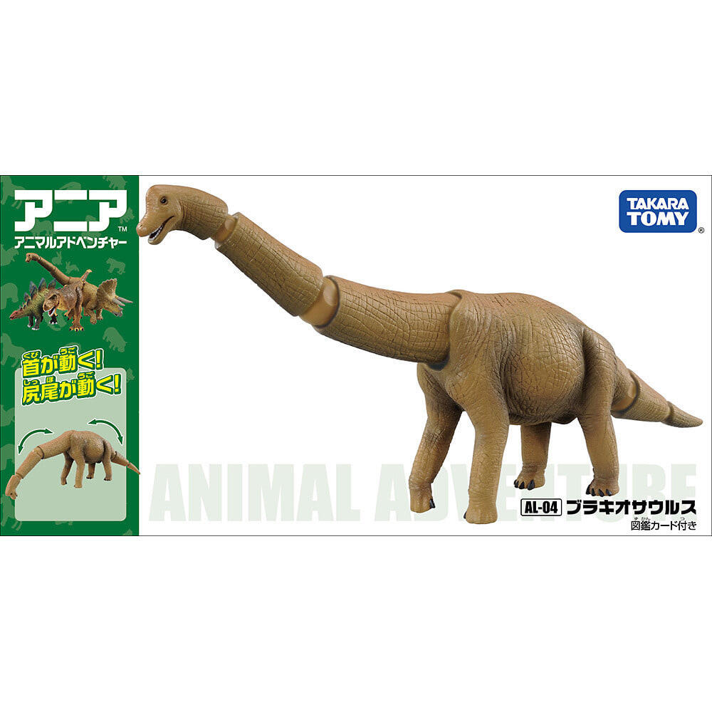 アニアは、動物の魅力や多様性を楽しく身近に体感できる1ギミック付き動物フィギュアシリーズです。動きで遊べる可動ギミック、リアルな塗装&ディテール、遊びやすい手のひらサイズ、コレクションしやすい低単価などが魅力です。ブラキオサウルスは首、尻尾が可動します。