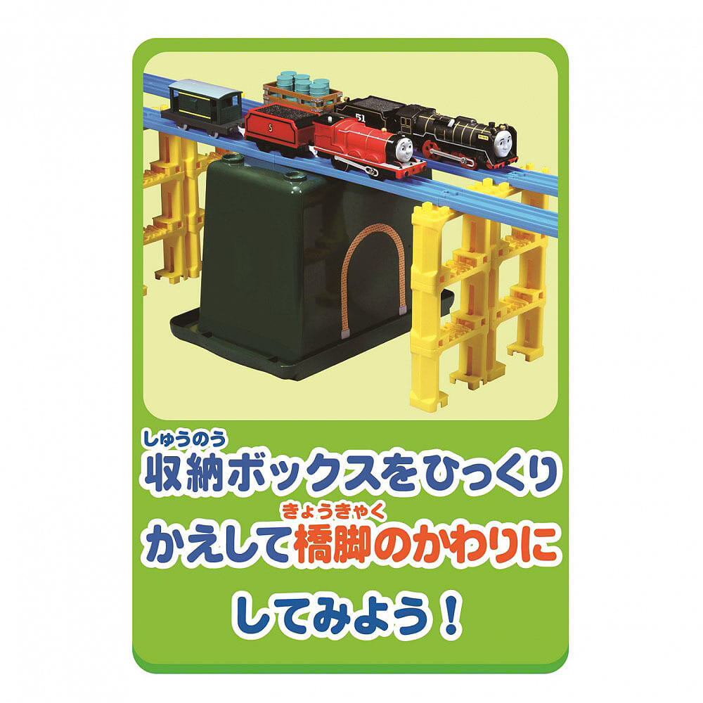 収納ボックスをひっくり返すと、橋脚としても使用できます。別売りの転車台を付けることもできます。