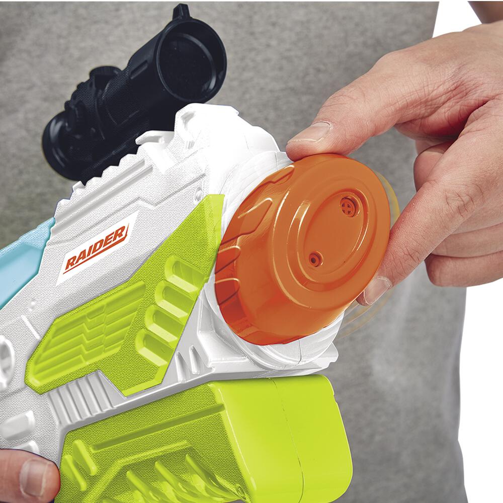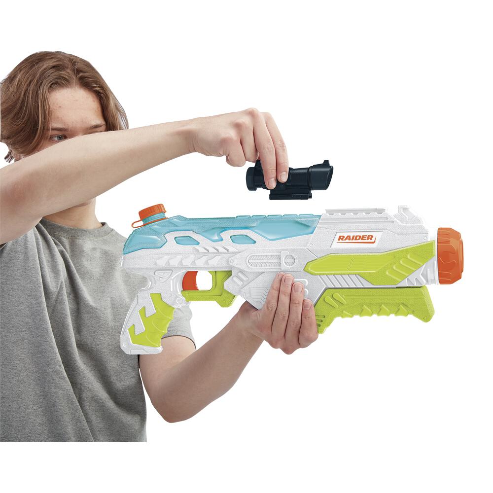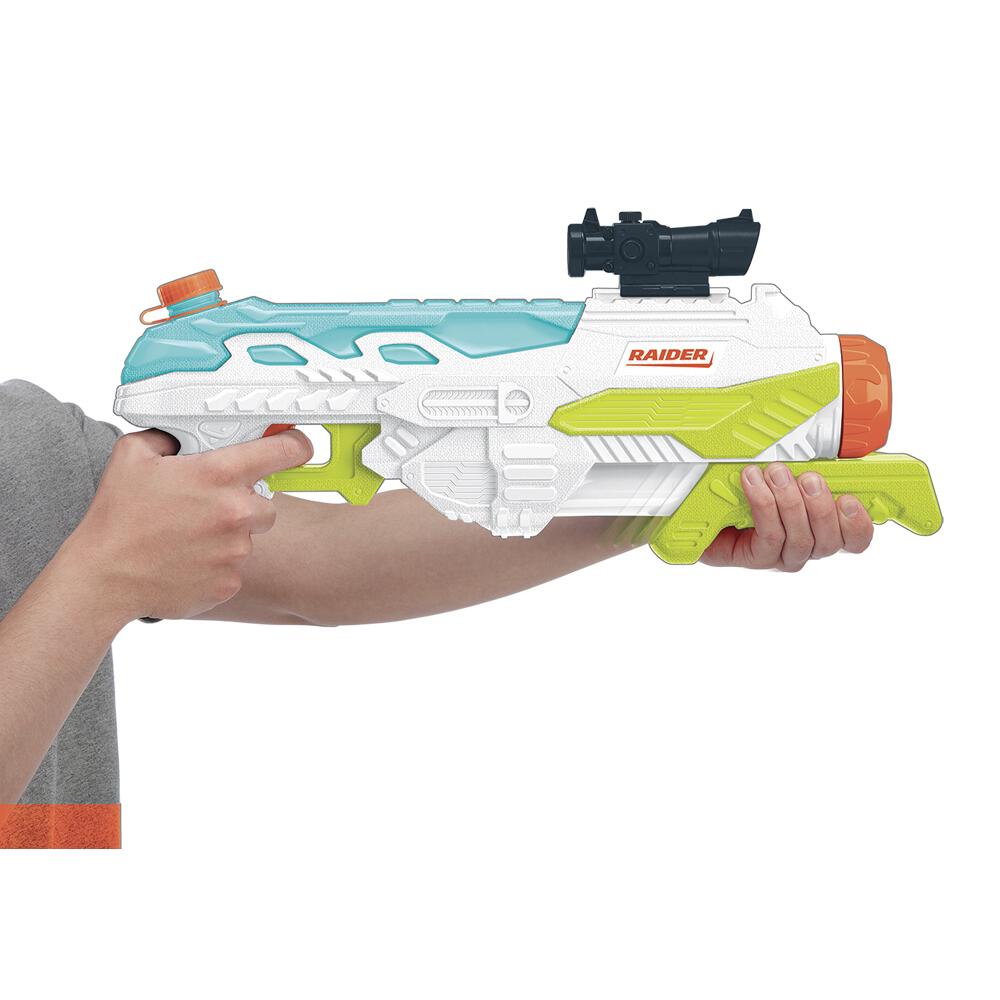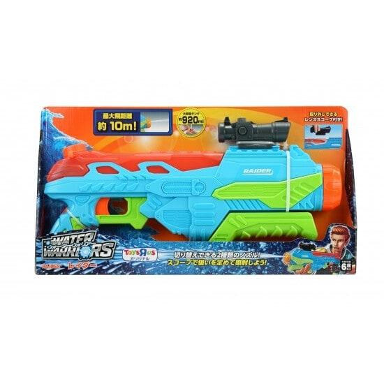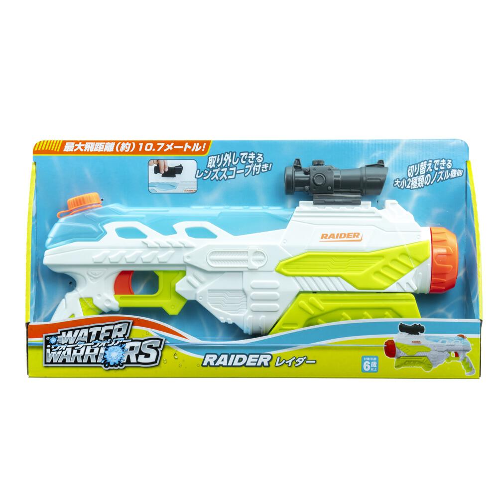 ウォーターウォリアー レイダーはトイザらスオリジナルの水鉄砲です。切り替えできる2種類のノズル!スコープで狙いを定めて噴射しよう!<最大飛距離>(約)10m<大容量タンク>(約)920ml<セット内容>本体×1