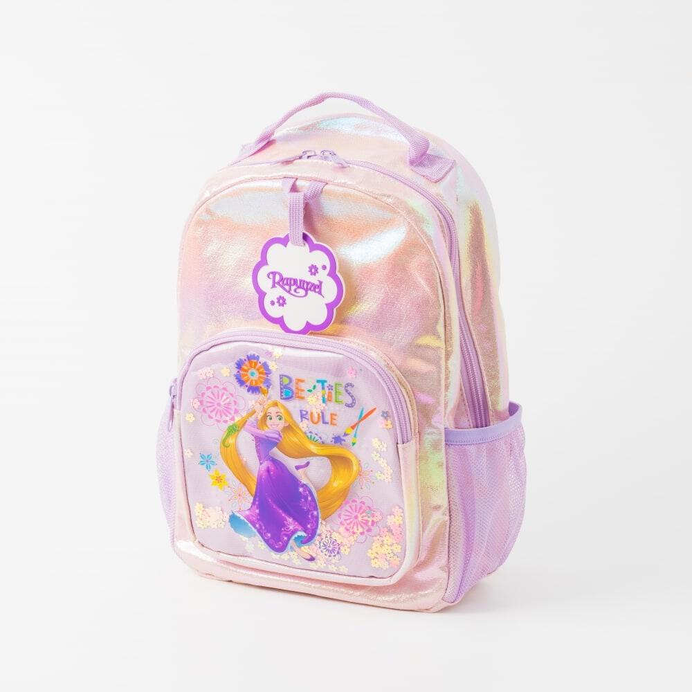 ディズニーより塔の上のラプンツェル/プリンセスのリュックの新作が登場!ポイント1:生地には光沢が綺麗なオーロラ合皮を使用♪ ポイント2:可愛いラバーチャーム付き♪ 裏にはお名前を書けるようにしました。ポイント3:前ポケットはスパンコールを入れて華やかに仕上げました。上品かつ華やかで女の子が背負うと可愛いデザインです♪<サイズ>高さ約35cm×マチ約11cm×横約22cm<商品仕様>・お子様が走り回っても、安心のチェストベルト付きなので、ずり落ちません。・背中は汗がこもらない、メッシュ素材。・メインのファスナーは、あけやすいダブルファスナー。・ショルダ-テープ部には反射素材を縫い付け。夜道も安心です。軽い素材なのでリュックがはじめてのお子様でも嫌がることなく背負っていただける商品です。<対象年齢>3歳~6歳頃のお子様へお勧め致します。※いずれかのデザイン 1つのお届けとなります。柄は選べません