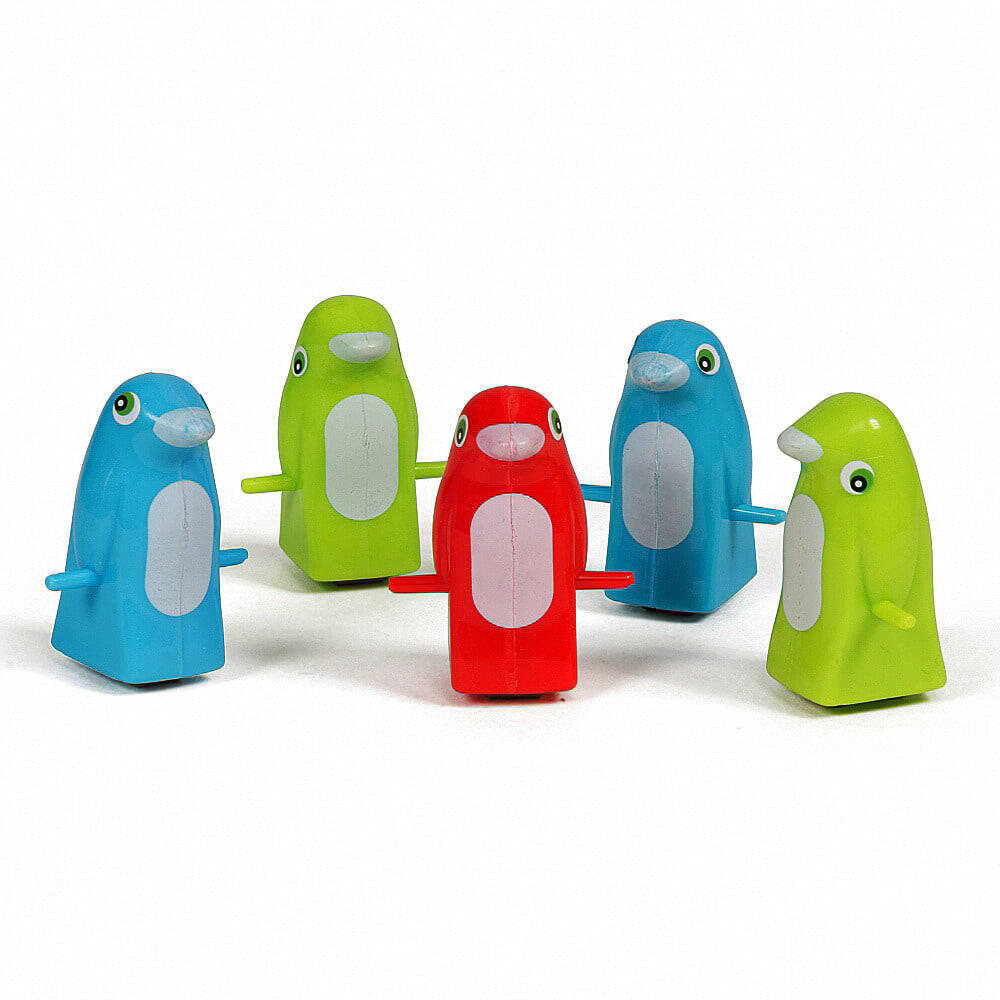 5羽のペンギンが階段を上ったり、スライダーを滑ったり、どこかなつかしい、見ていて飽きないペンギンのパレードです♪