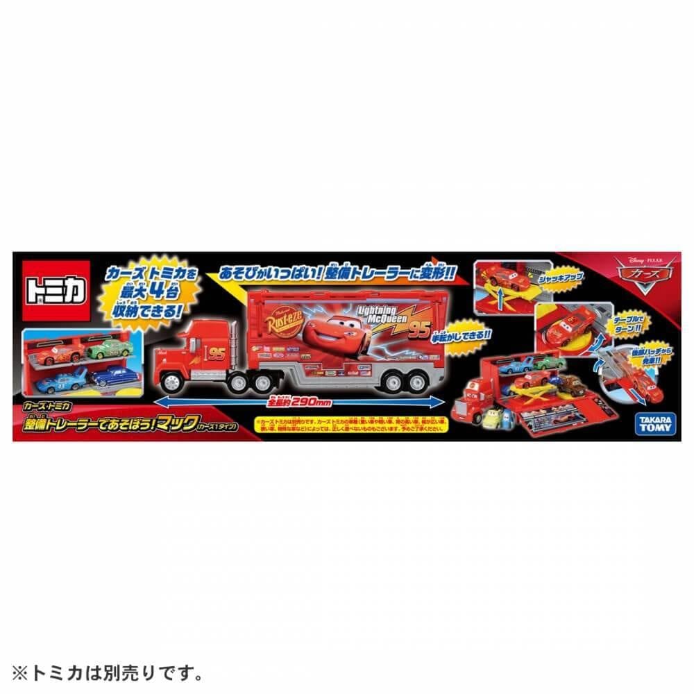 マック本体と、カーズ トミカを載せて遊ぶことのできるトレーラーです。