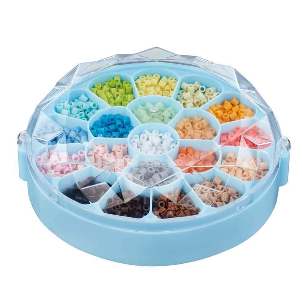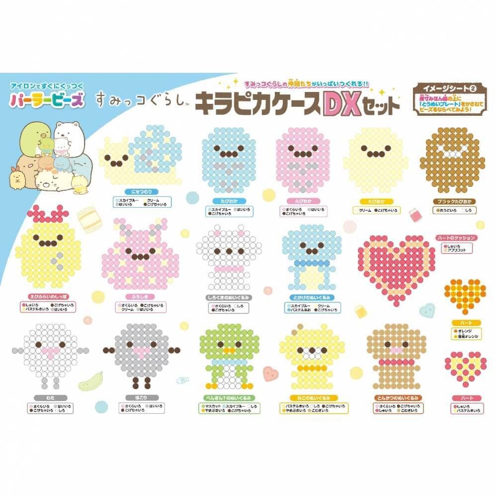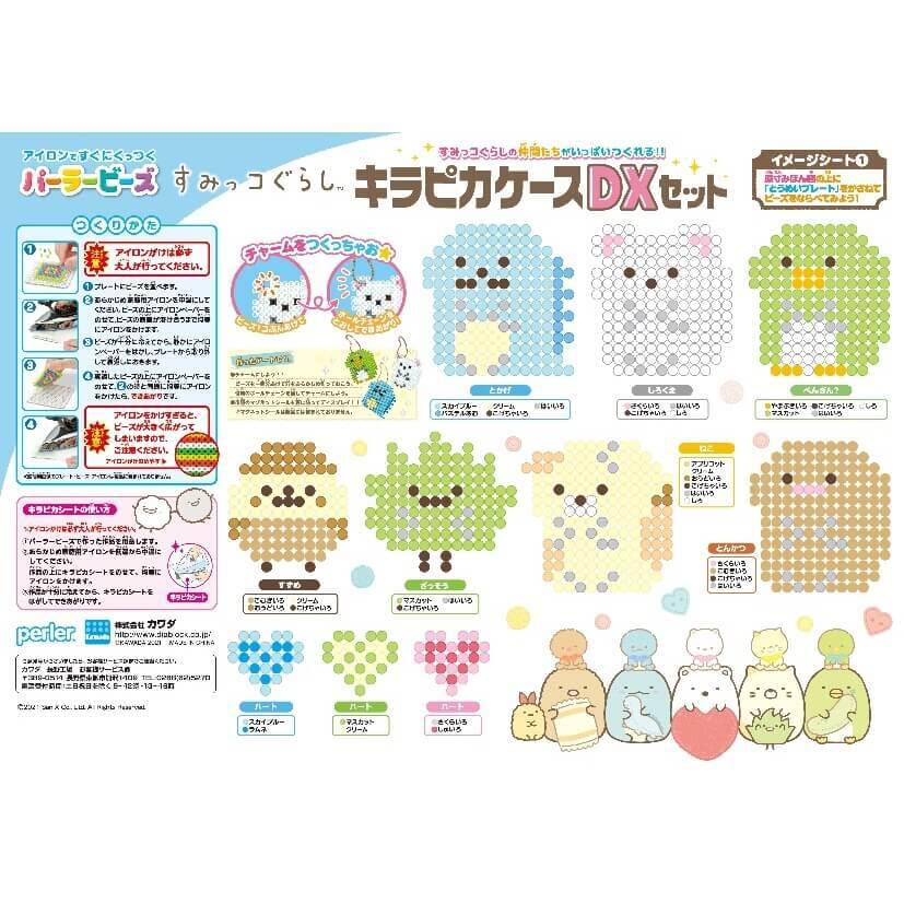 <セット内容>ビーズ全20色4,300ピース、クリスタルケース×1(クリスタルカバー×1、ビーズステージ×1、ビーズパレット×1)、透明Lプレート(しかく)×2、イメージシート×2、ビーズピンセット×1、アイロンペーパー×1、キラピカシート×1、ボールチェーン×5