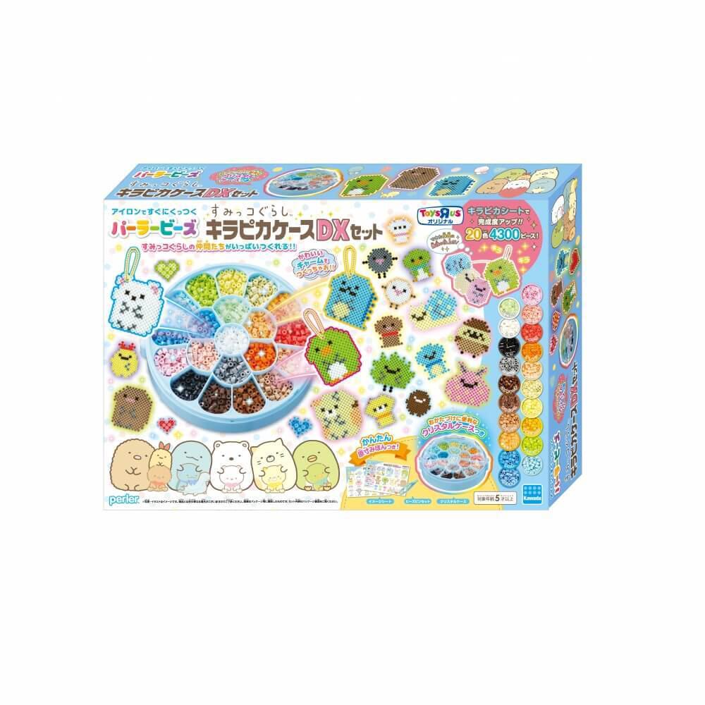 大好きなすみっコぐらしの仲間たちをパーラービーズで作っちゃおう!ビーズはたっぷり20色、約4,300ピース。クリスタルケースにビーズを入れれば作る楽しさ倍増!イメージシートの通りにビーズを並べるだけで誰でも簡単に作れるよ!キラピカシートで完成度もアップ。付属のボールチェーンを使ってチャームもできちゃう!トイザらスだけの限定商品です。