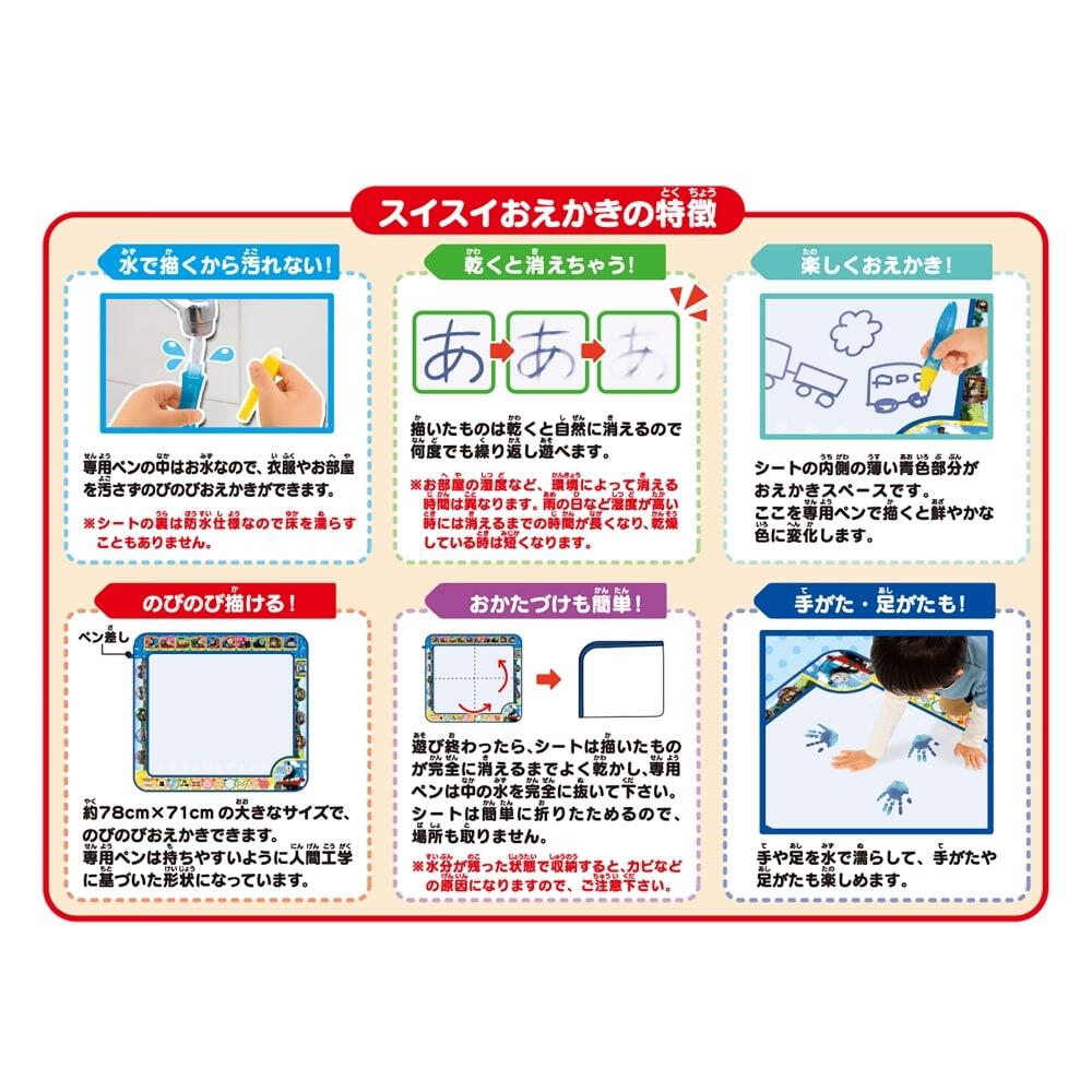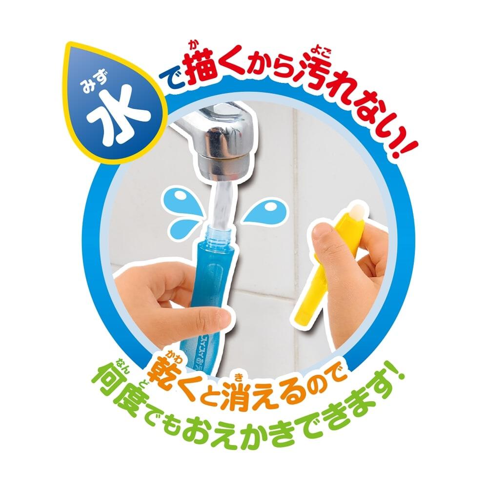 描いた線路やイラストは水が乾くと消えるので、繰り返し遊べて環境にも優しい!