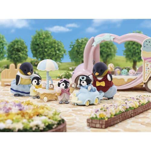 <セット内容>ペンギンの赤ちゃん(ピンク服)、ペンギンの赤ちゃん(ブルー服)、ゴーグル(ピンク)、ゴーグル(ブルー)、お出かけ用カート