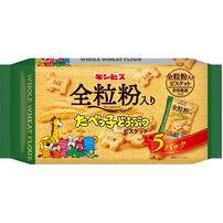 たべっ子どうぶつのビスケットに全粒粉を入れました。小分けで食べやすい5パック入りです。
