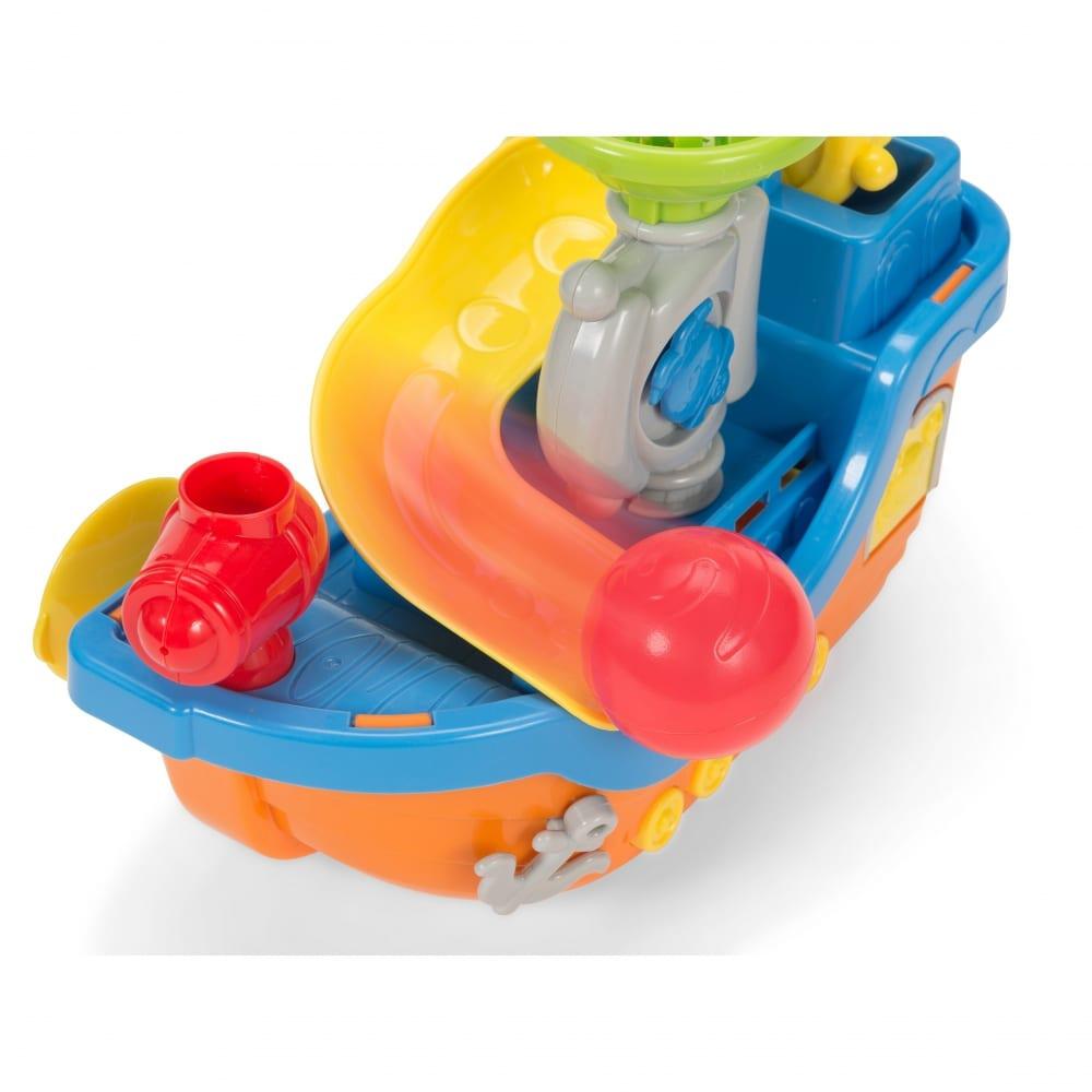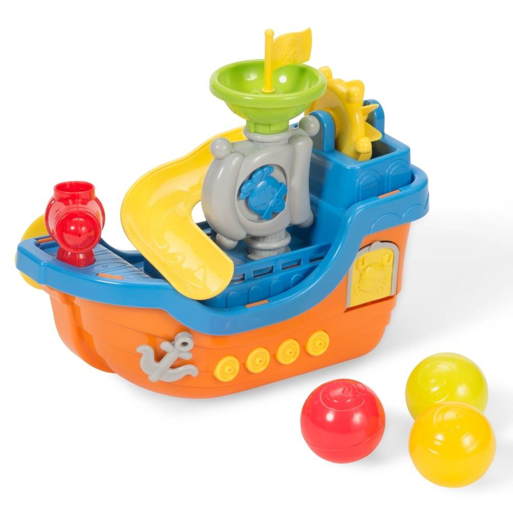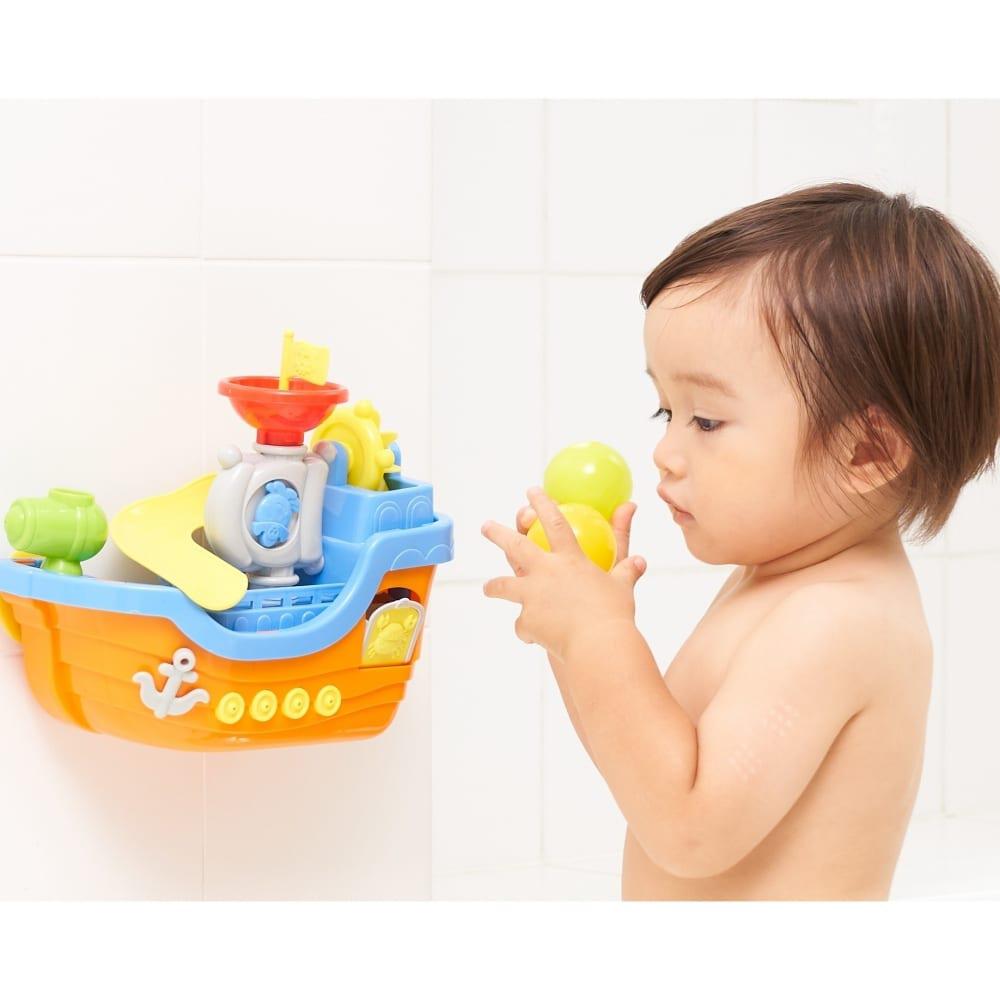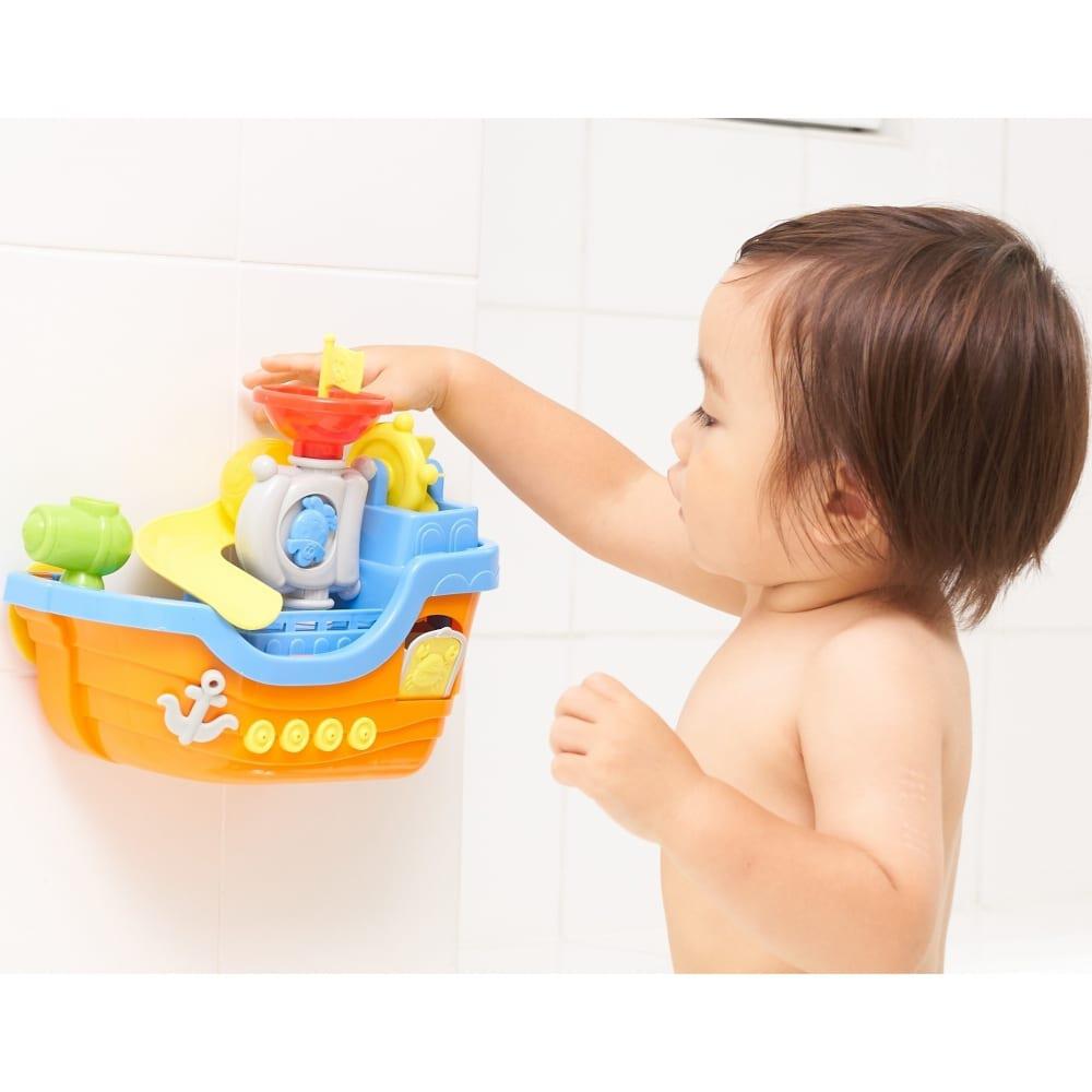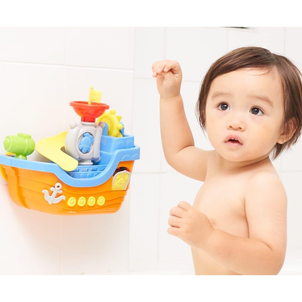 The Splish Splash Pirate Boat helps to create a positive bath time routine that both kids and parents will enjoy. Little ones can pour water into the boat to activate the spinning wheel and octopus. The different functions of this boat foster creativity and introduce problem solving skills as kids interact with the different splash and pour features of the toy. Bath time will be an imaginative and positive experience for everyone. The suction cup makes tidying up quick and easy as the boat can attach to tiled and other bathroom surfaces.