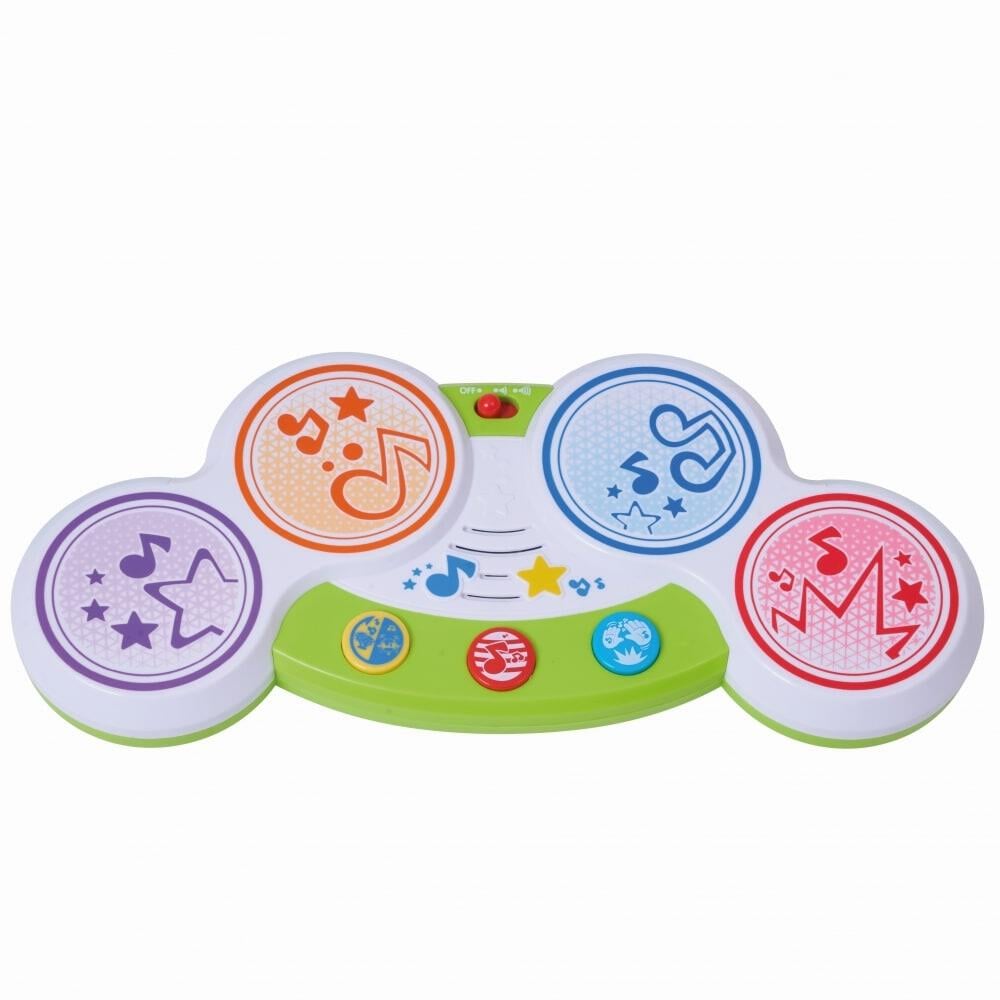 With a simple touch, this easy-to-use drum set helps your little one discover songs, sounds and rhythms all by themselves! There are no buttons or keys, kids just need to choose their mode and tap to play. The colourful lights and brightly coloured components ensure that their introduction to music is a fun and positive experience. There are multiple play modes, preprogrammed melodies and rhythmic patterns. As well as fostering creativity and imaginative play, this set will also introduce the concept of cause and effect as kids start to make the connection between actions and outcomes.