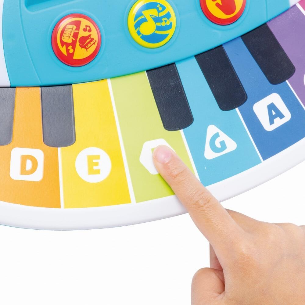 With a simple touch, this clever piano helps your little one discover songs, sounds and rhythms all by themselves! There are no buttons or keys, kids just need to choose their mode and tap to play. The colourful lights and brightly coloured components ensure that their introduction to music is a fun-filled and positive experience. There are multiple play modes, preprogrammed melodies and rhythmic patterns, and little ones can also practice their skills with ‘one key one note’ mode as they play and learn through repetition.