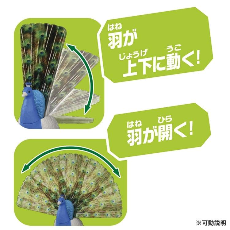 "アニア ASシリーズに「クジャク(インドクジャク)」が登場!"クジャクは、羽が上下に動き、開きます。・「アニア」は、動かして遊べる手のひらサイズのアクション付動物フィギュアシリーズです。・「動物の特徴や種類を知りたい」という子どもの知的好奇心を刺激する""立体動物図鑑""として楽しめる商品です。・動かして遊べる可動アクション、リアルな造形や塗装、遊びやすい手のひらサイズなどが魅力です。<セット内容>フィギュア(1),図鑑カード(日本語)(1),図鑑カード(英語)(1)