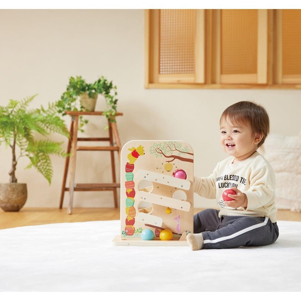 トイザらスの木製玩具シリーズより、プーさんの世界観を再現したボール落としの登場!