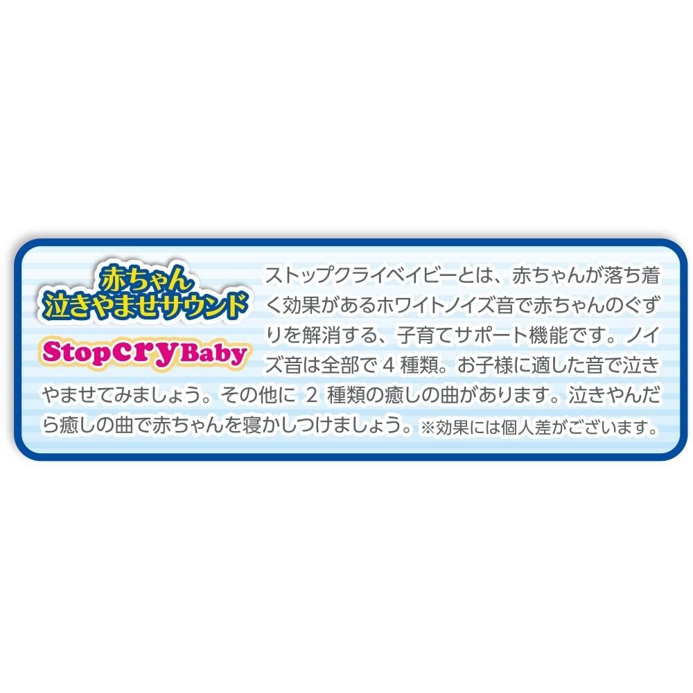 人気の赤ちゃん泣きやませサウンド搭載(6種類)で育児をサポートします。