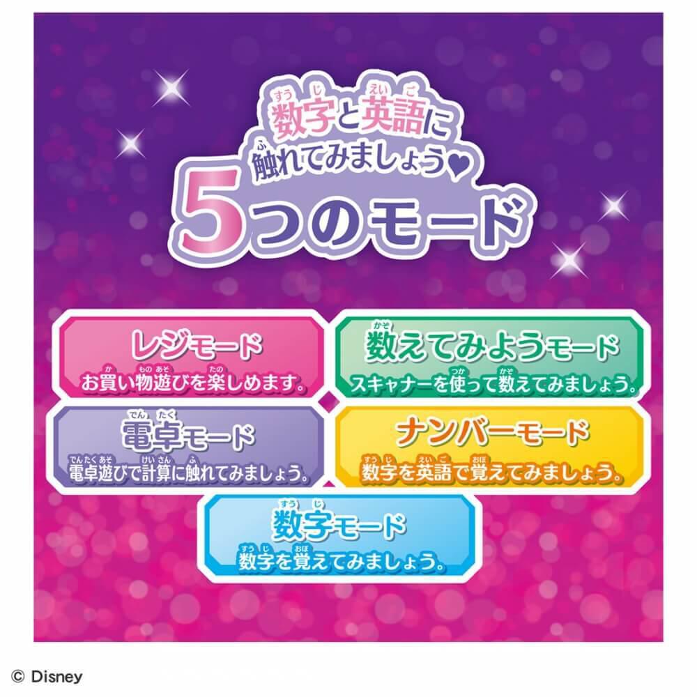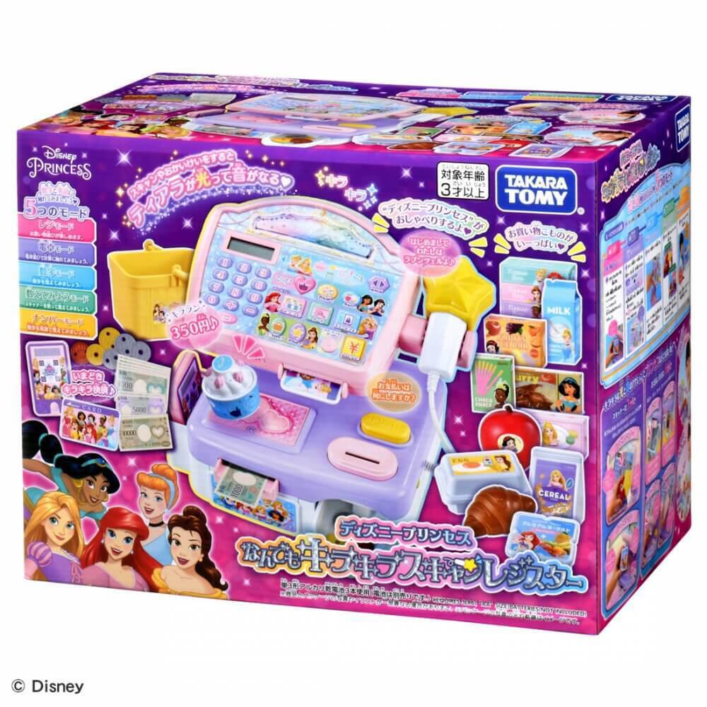 ティアラがキラキラ輝き、音が楽しいディズニープリンセスのレジスター。おままごと、買い物ごっこを楽しんじゃおう!