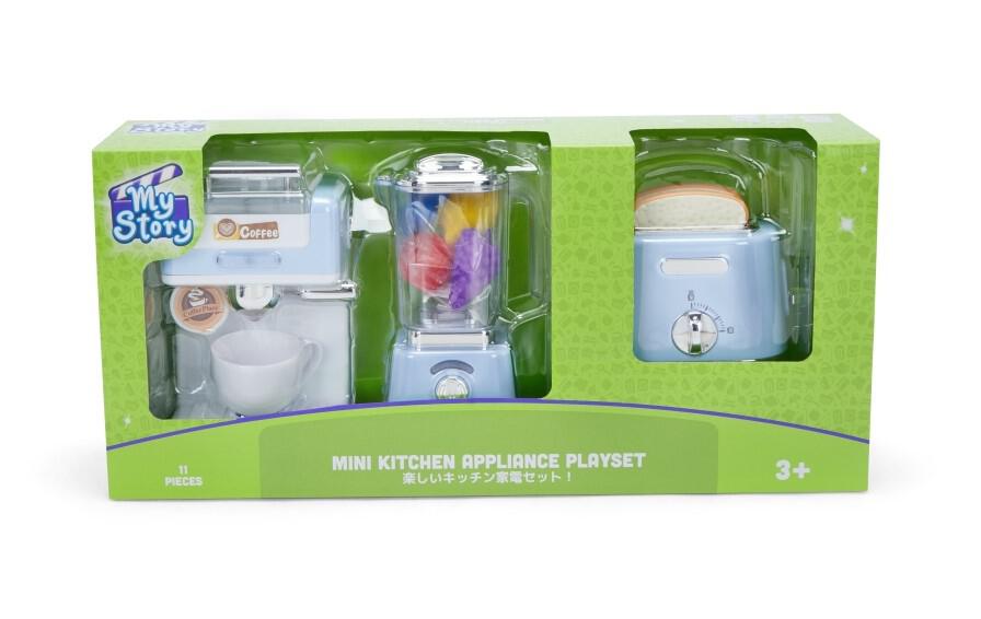 コーヒーメーカー、ミキサー、トースターが入った楽しいキッチン家電セットです。