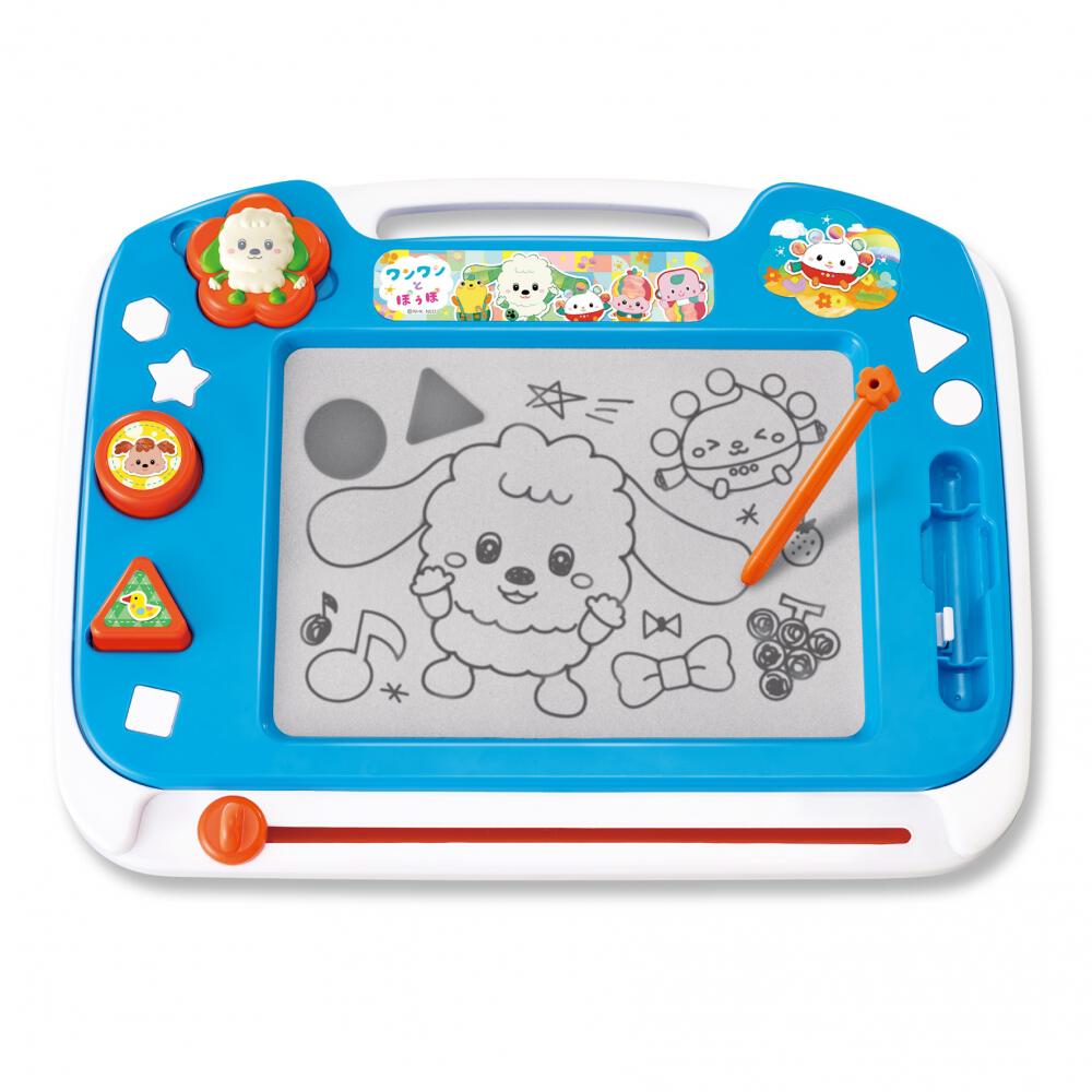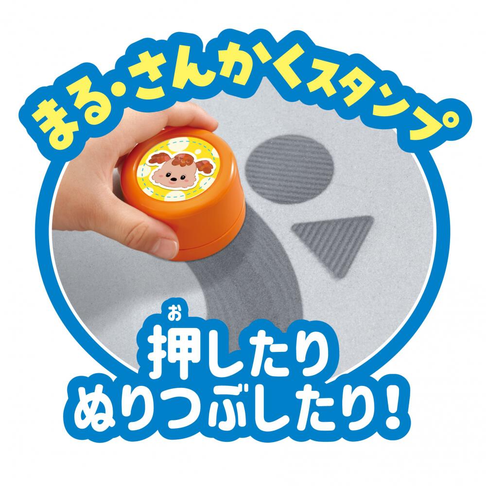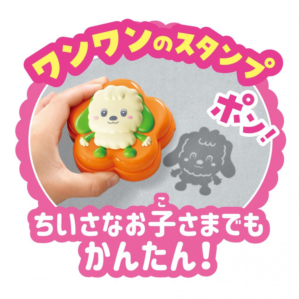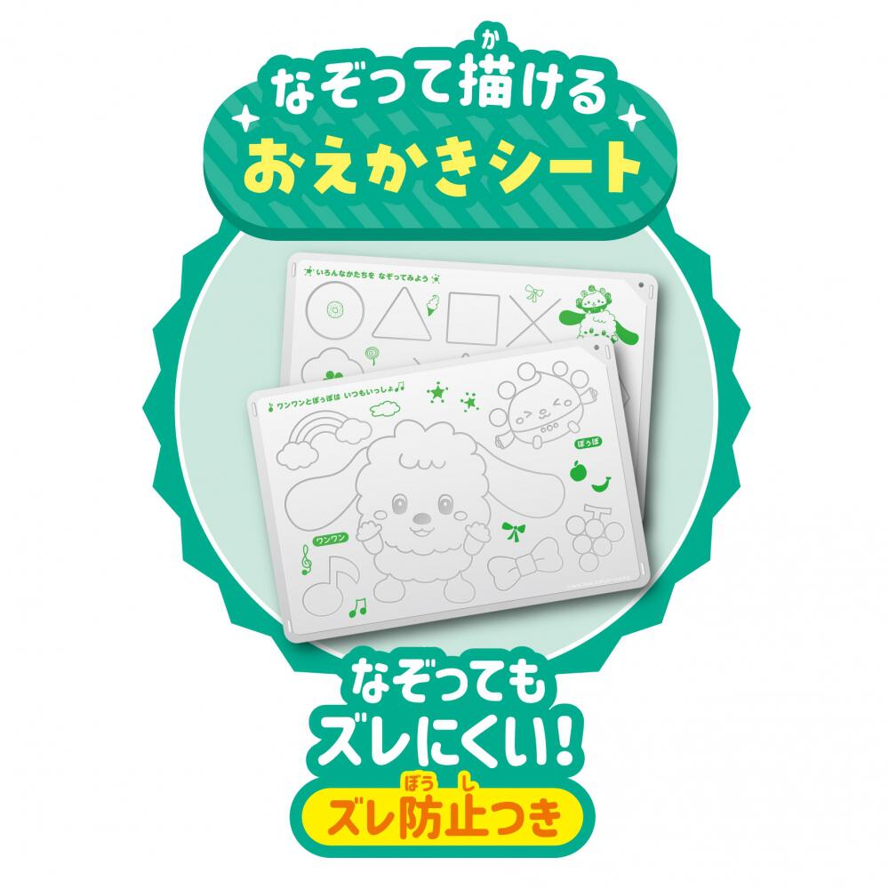 小さなお子さまでも簡単にワンワンの顔スタンプを押したり、おえかきシートでキャラクターや図形をかけます。