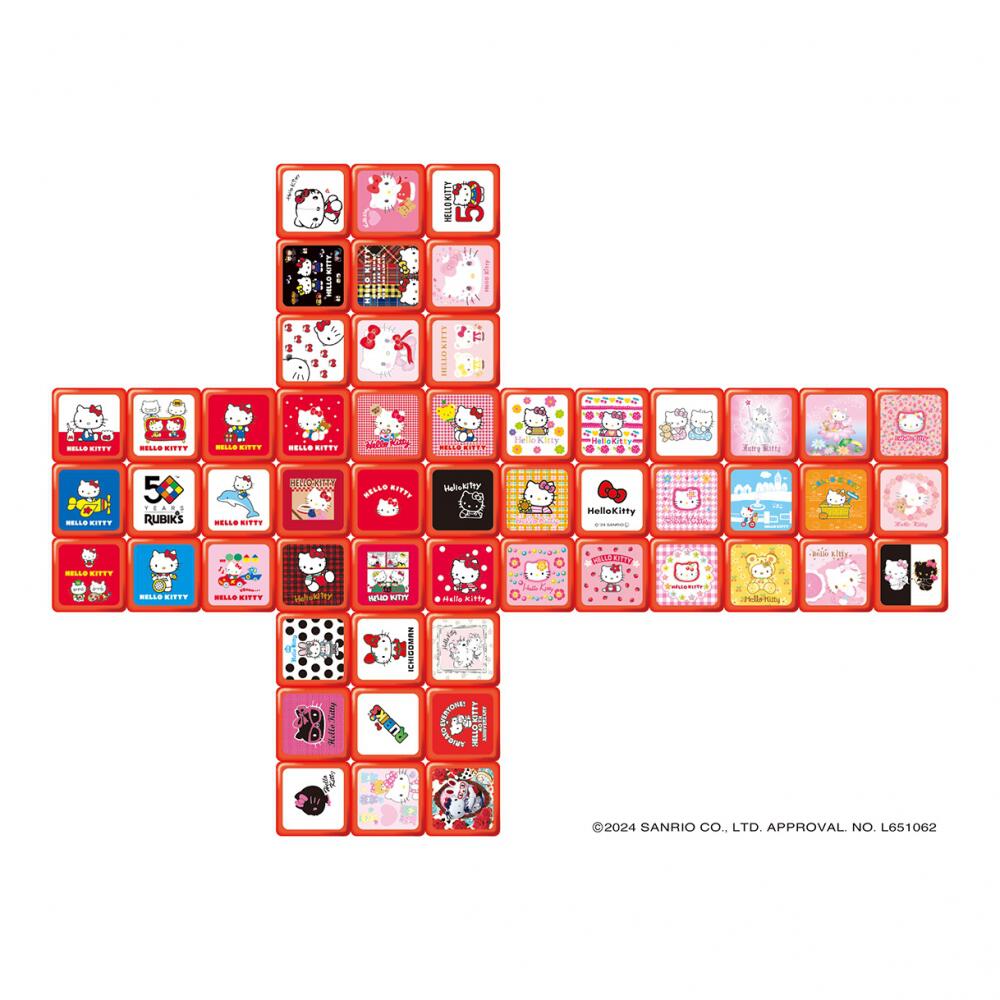 1974年から2024年最新のハローキティまで各年のハローキティのアートをルービックキューブの各面に配置。