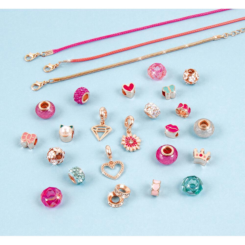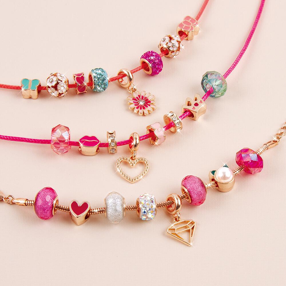 <セット内容>ネタリックブレスレットx1、コードブレスレットx2、キラキラビーズx15、チャームx3、ビーズチャームx6、取扱説明書x1