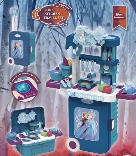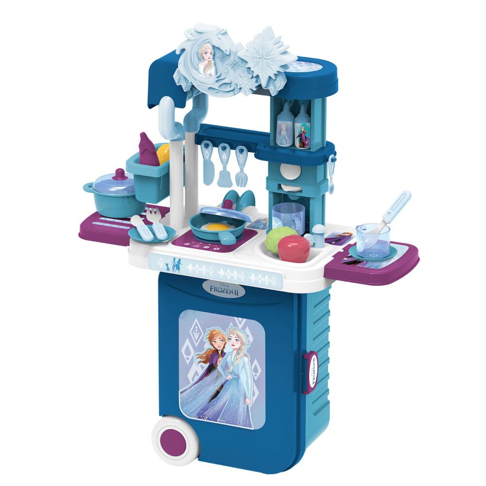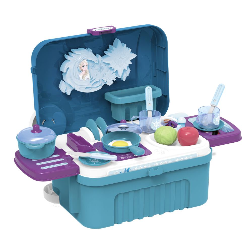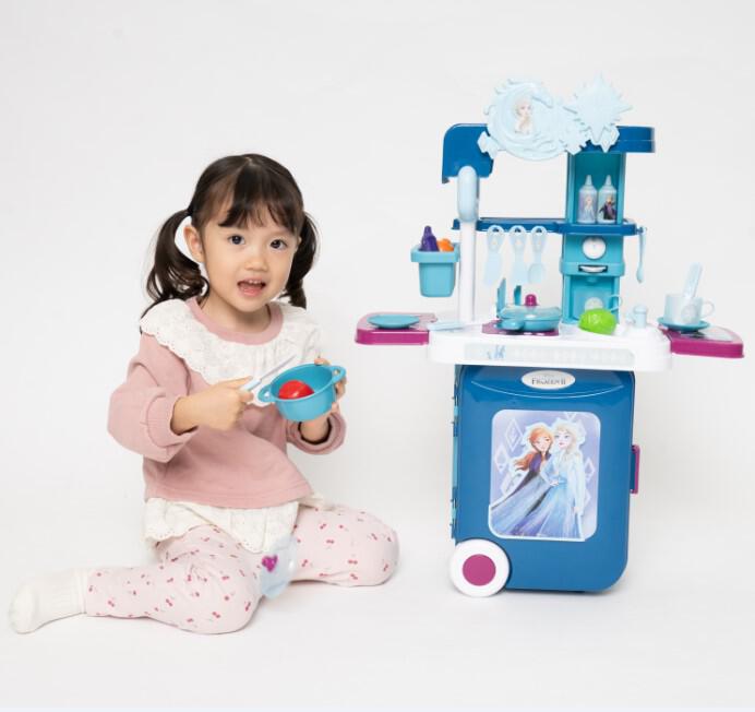 キッチンにへんしん!コロコロはこべるスーツケース登場!ディズニー アナと雪の女王のおしゃれなカラーリングでおしゃれなおままごとセットです。形を変えてあそんでね。