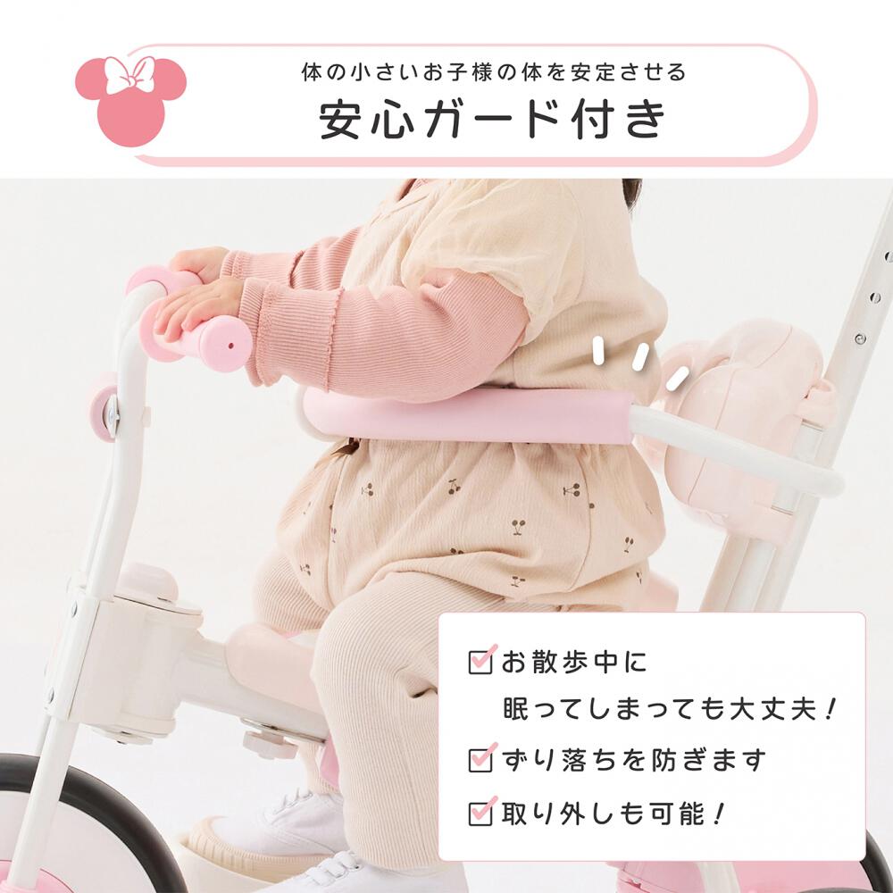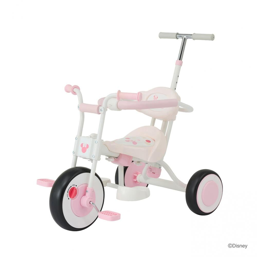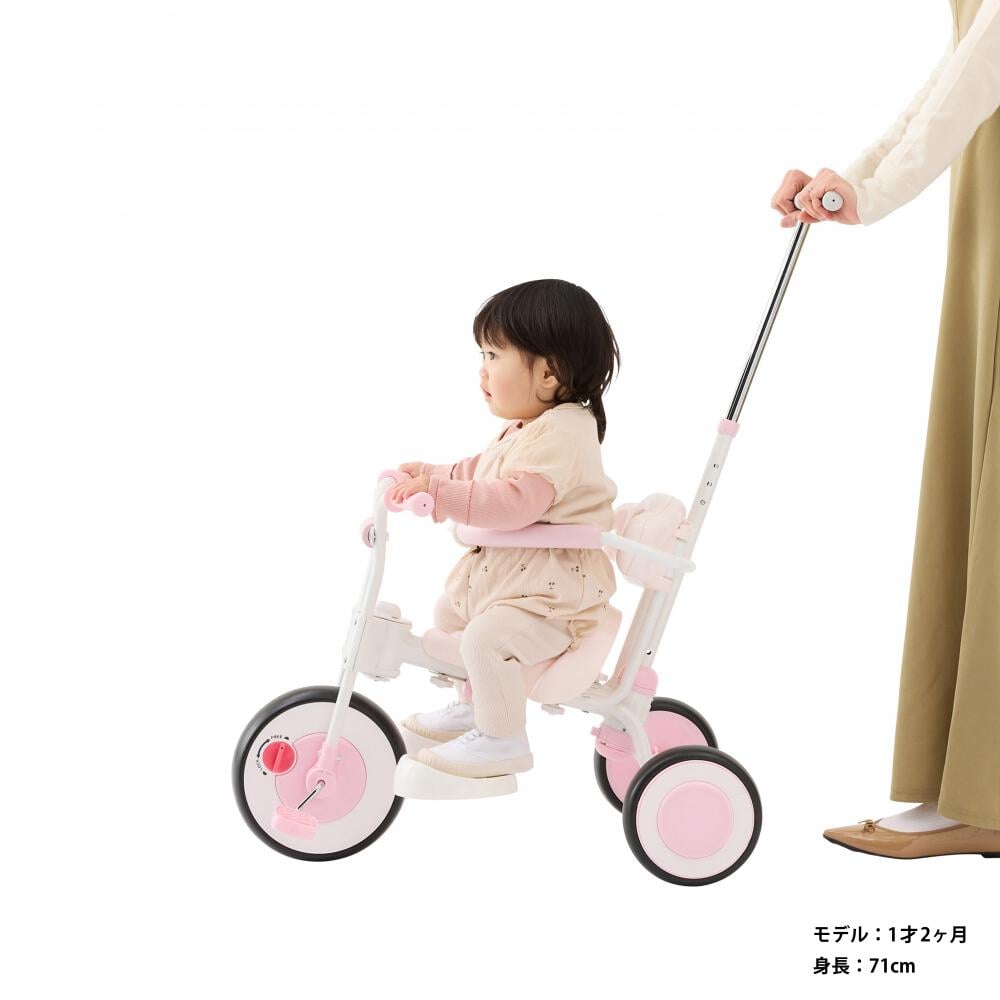 1)親子のお散歩にぴったりな、1.5歳 から乗れるシンプルタイプの押し手棒付き三輪車。