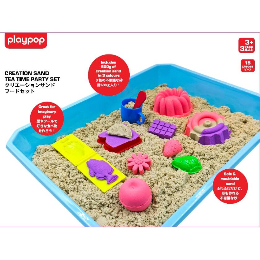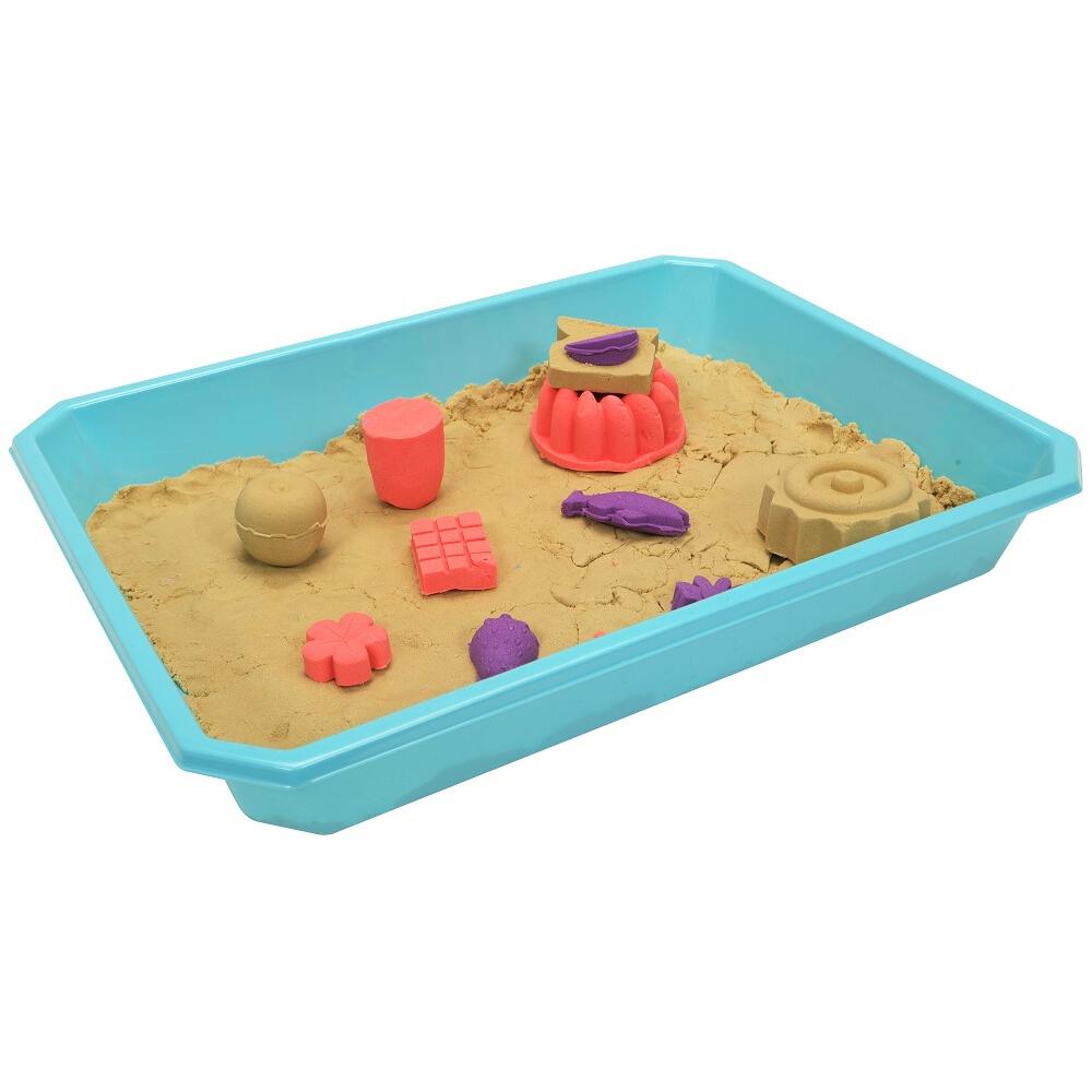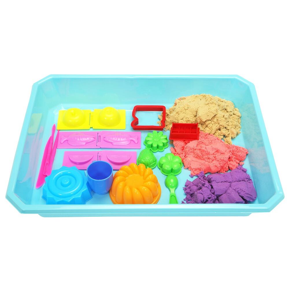<セット内容>サンド(ブラウン 200g)、サンド(レッド 200g)、サンド(パープル 200g)、マルチトレイ、型x10種、ヘラ×3種、カップ、スプーン