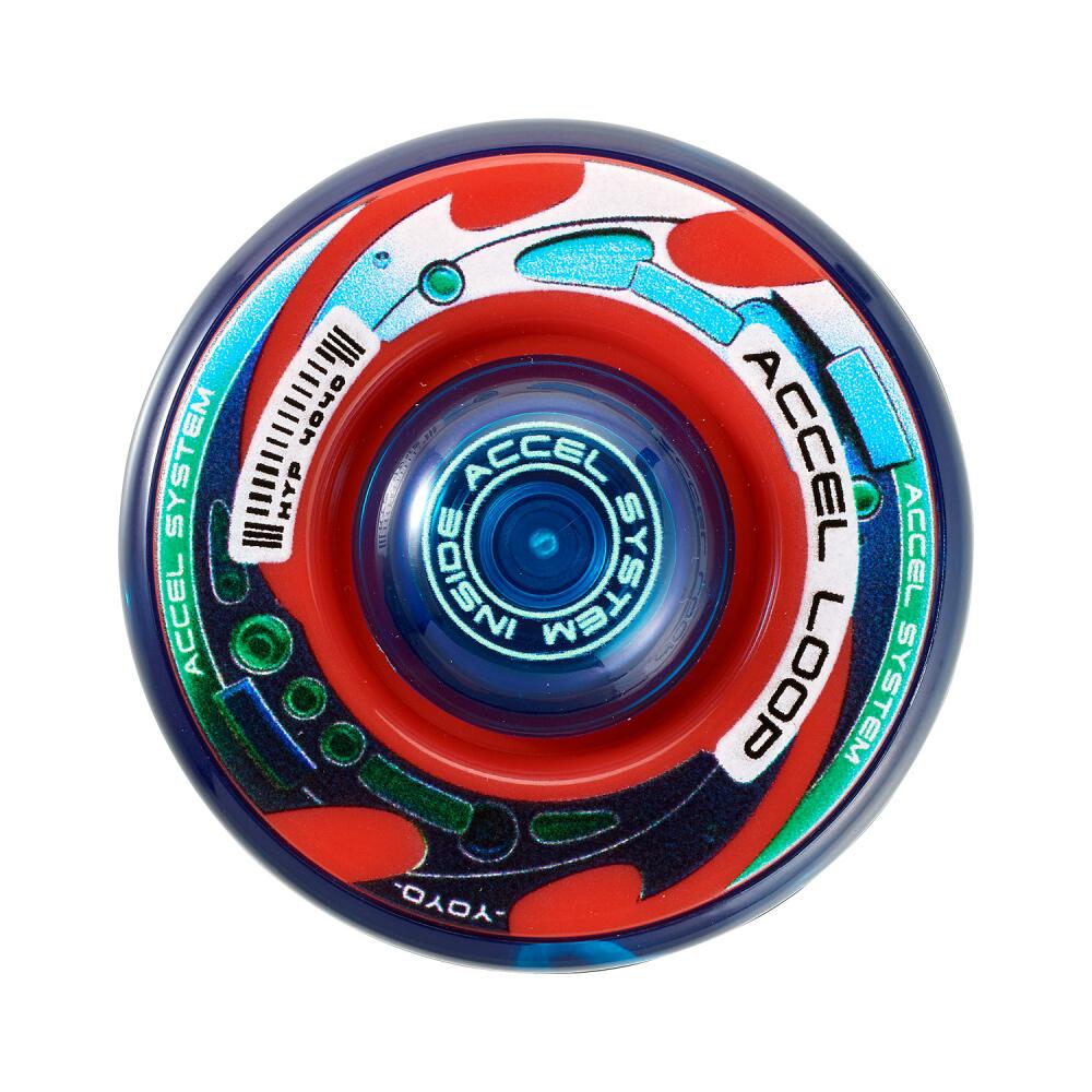 本体を手に持った状態でストリングを勢いよく引くことで、本体を投げずに高速回転させることができる日米で特許出願済の新機能「アクセルシステム」を搭載したハイパーヨーヨーシリーズです。本機能を搭載したことにより、従来のヨーヨーでは再現不可能な新たなトリックが可能となりました。