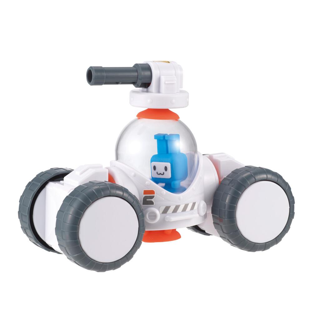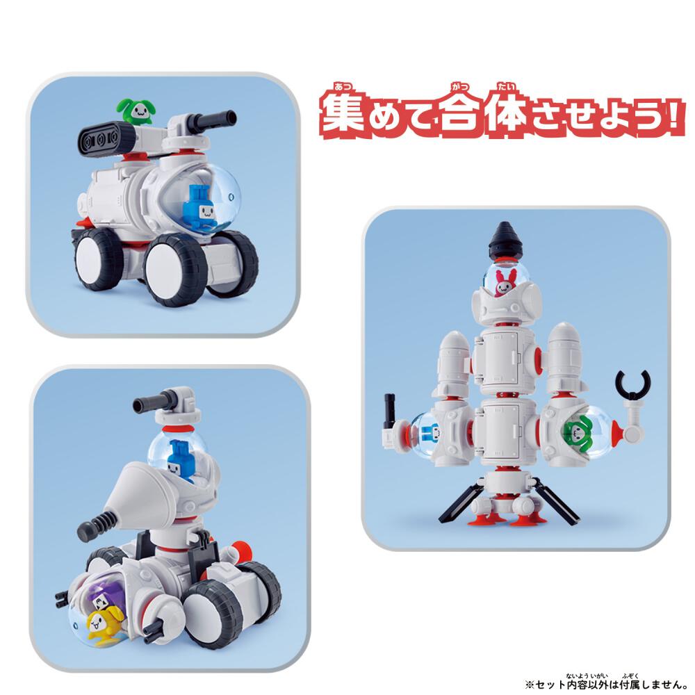 ウサギによく似た宇宙生命体「ウサキュー」(吸盤付き人形)と大型キャノンと大型のタイヤ4輪が特徴のメカ「キューバイン」のセットです。