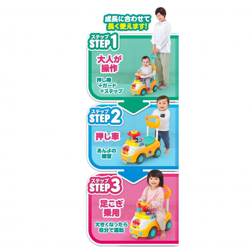 アンパンマンといっしょにドライブ! 3STEPよくばりビジーカー 押し棒+ガード付き 足けリ乗用玩具 0歳 1歳 2歳