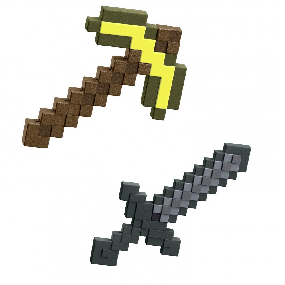 ゲーム上に登場し、マインクラフトファンなら誰しもが知っている武器「エンチャントされた剣」と「鉄のツルハシ」。お子さまのごっこ遊びに最適です。JCV18 金のツルハシJCV19 石の剣