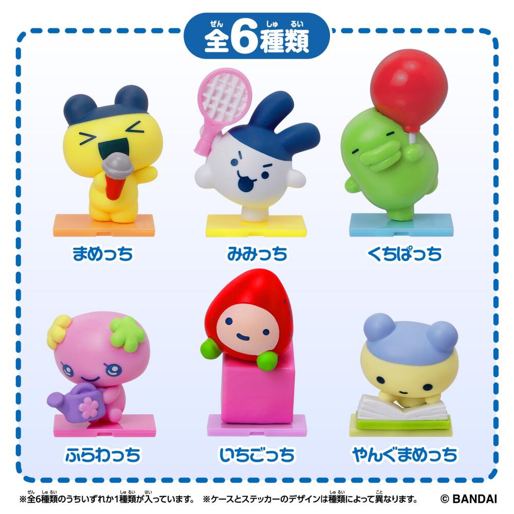 たまごっちのかわいい日常が集めて楽しい「フィギュア」になった「Tamagotchi Collectibles」シリーズより、人気キャラクター6種のくすっと笑える「遊びシーン」を再現した「Hobby Time」が登場!Tamagotchi Connection型ケースとボールチェーン付きで、持ち歩いても楽しめます。また、ケースはTamagotchi Connection本体のケースとしても使えます。[ラインナップ(全6種)]・まめっち・みみっち・くちぱっち・ふらわっち・いちごっち・やんぐまめっち※全6種類の内、いずれか1種がランダムで入っています。※商品の特性上、同じものが続けて出たり、全部が揃いにくい場合がありますので、ご了承ください。