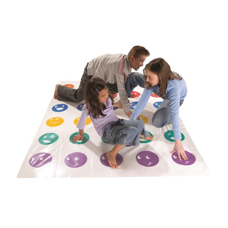 ルーレットの指示に従い、倒れないように手や足をマットの上で動かそう!
