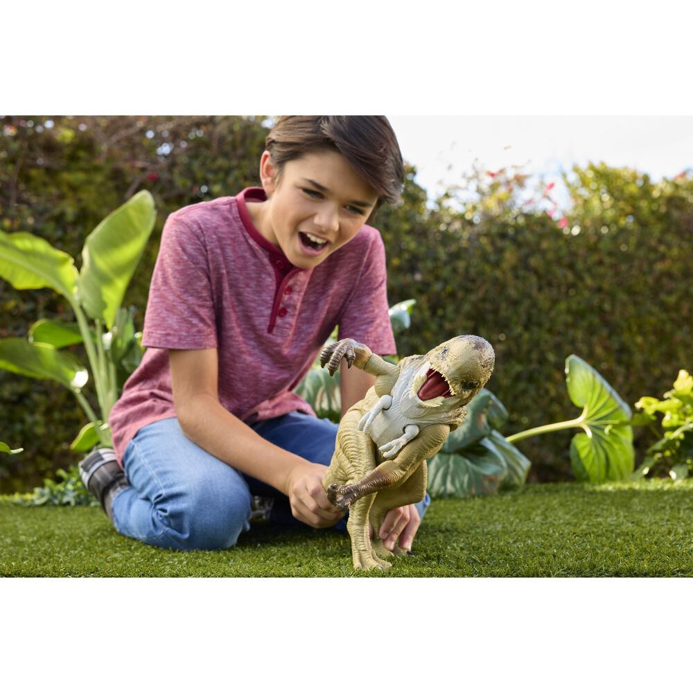 ボタンを押すと小刻みに震えてうなってほえる革新的なアクションでリアルに再現!尻尾を上下左右に動かすと大きなウデを振って攻撃!