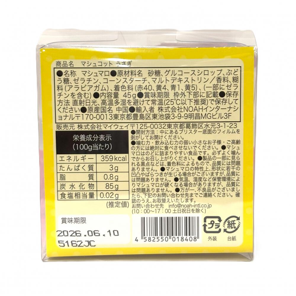 原材料名:砂糖、グルコースシロップ、ぶどう糖、ゼラチン、コーンスターチ、マルトデキストリン/香料、