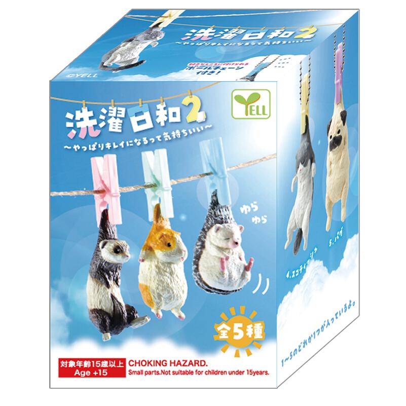 『選択日和~やっぱりキレイになるって気持ちいい~』お風呂が苦手そうなどうぶつ達が 洗濯されてゆらゆら・・ゆれて日光浴。飼い主にとってとても羨ましい光景がミニフィギュアとなりました♪好きなところにつけられるボールチェーン付です。●バリエーション 全5種●・パグ・スコティッシュ・フェレット・モルモット・ハリネズミ※どれか1つが入っています。※種類は選べません。※複数個お買い求め頂いた場合、同じ種類が届く可能性がございます。予めご了承ください。サイズ:約6.1cm