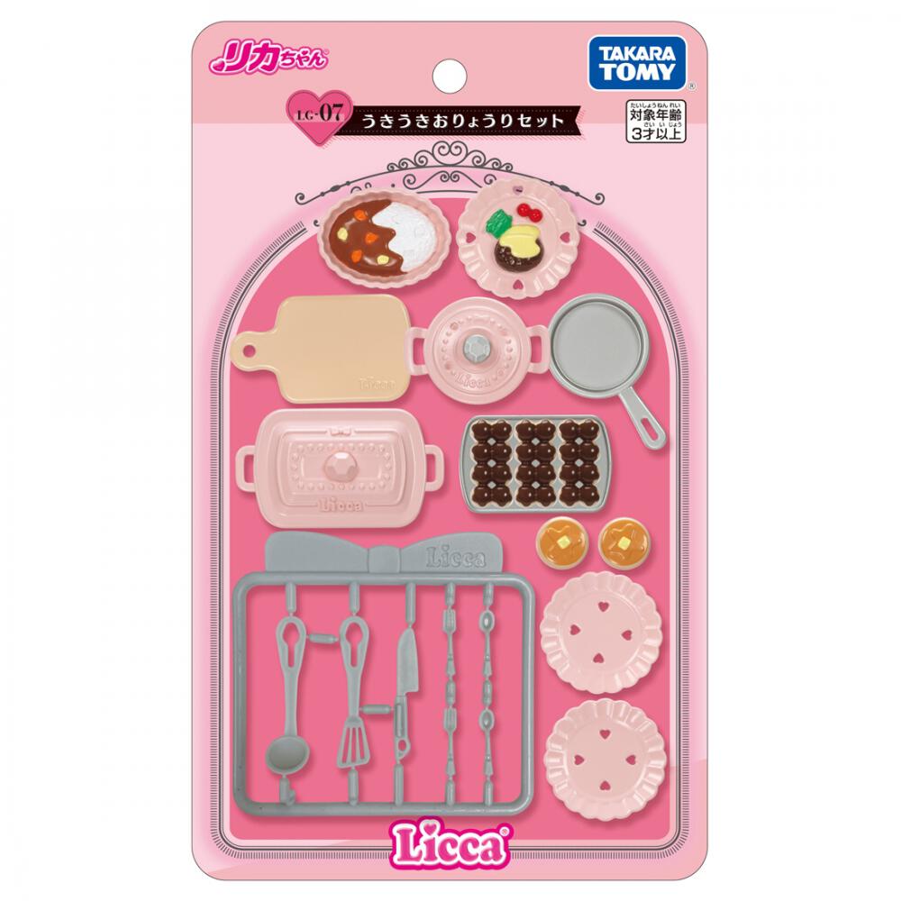 キッチンで遊べるおなべやフライパン、まな板などのキッチン用品とカレー、ハンバーグ、たこ焼き、パンケーキなどのおりょうり小物のグッズセットです。