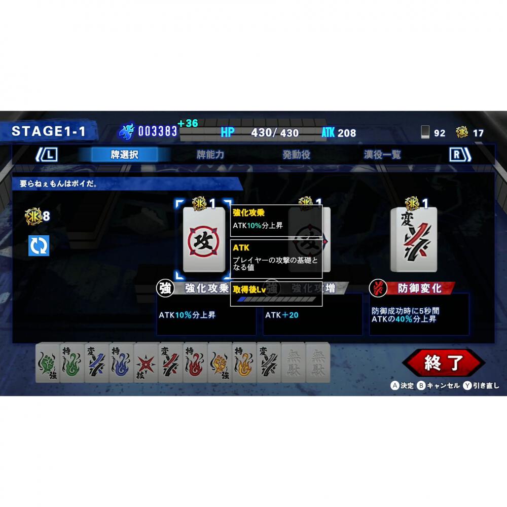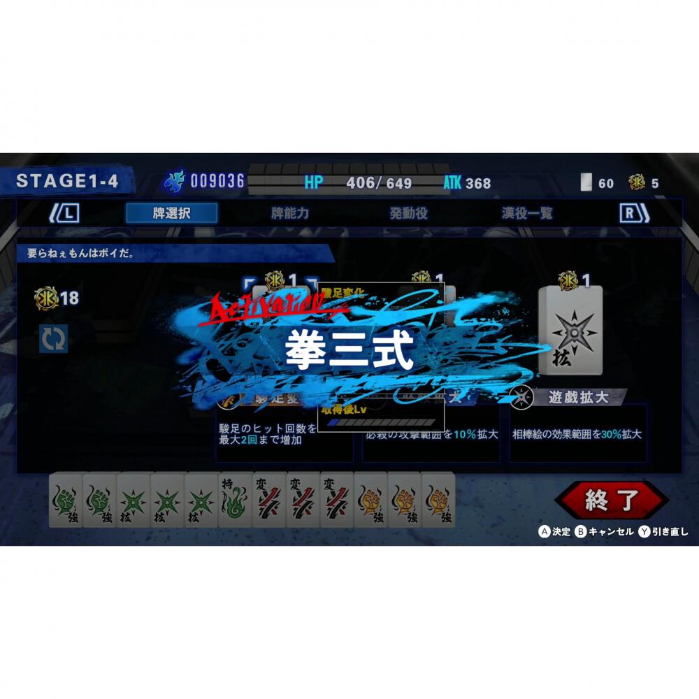 そこから1バトルが終わる毎に、喧嘩麻雀システムが始まりバトルで拾った“証”を使って、漢牌を獲得しよう。