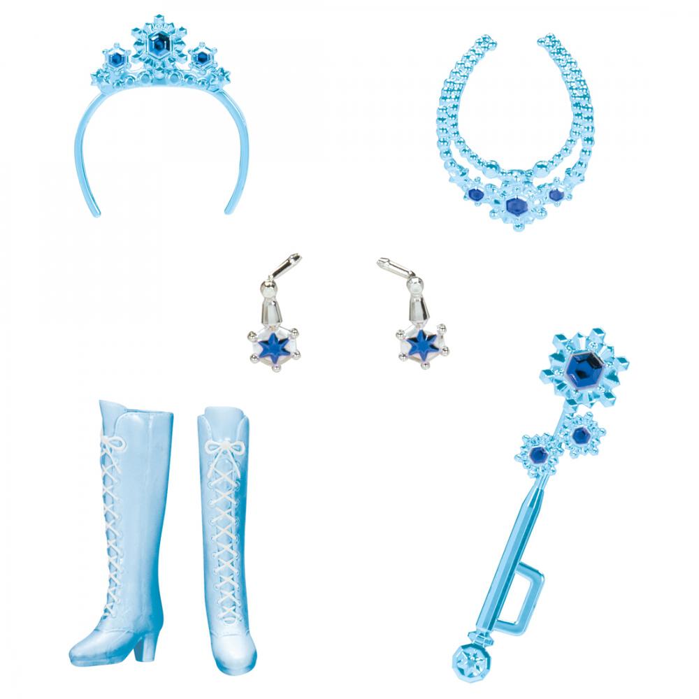 雪の結晶モチーフのティアラ、ステッキ、ネックレス、イヤリングに加えて、クリアブルーのブーツもセット。