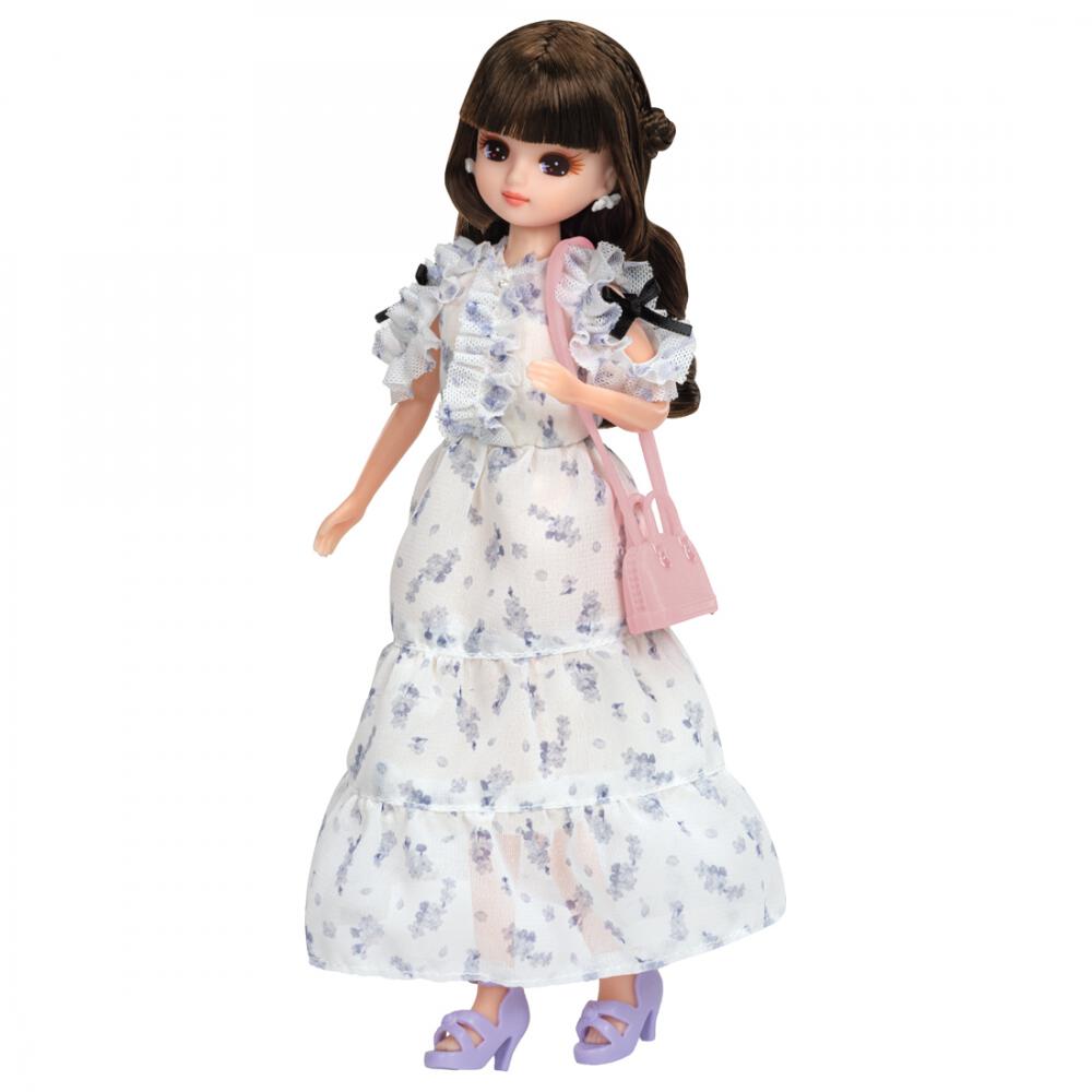 ボリュームまつ毛と口角がきゅっと上がった笑みリップのNEWメイク&NEWヘアで、表情まで印象がアップしたリカちゃんです。ふんわり花柄とリボン、フリルで華やかに。毎日を特別にするリアルクローズワンピースを着た、春に似合うNEWメイクのリカちゃんです。