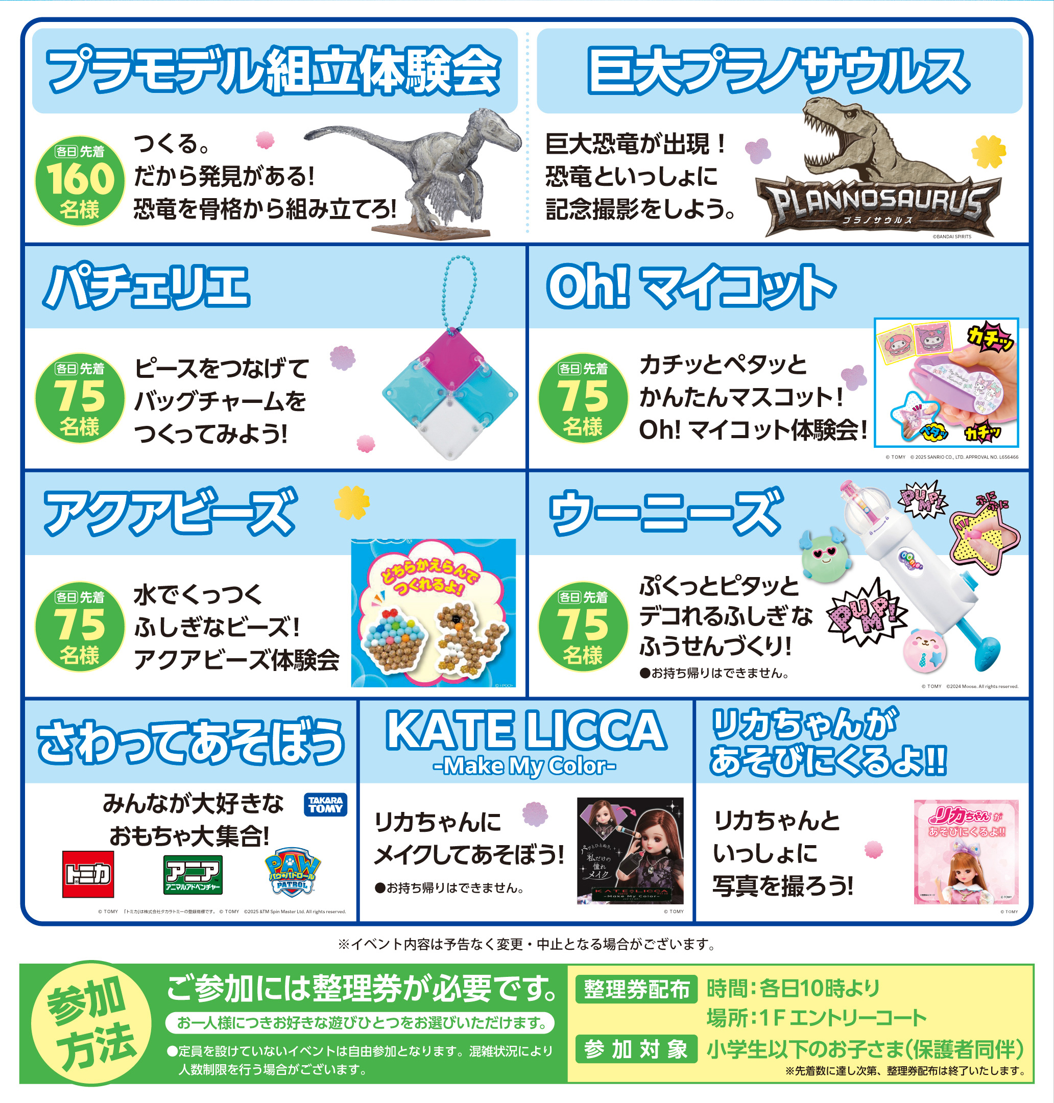 ・参加整理券はお子さま一人につきお好きな遊びひとつをお選びいただけます。