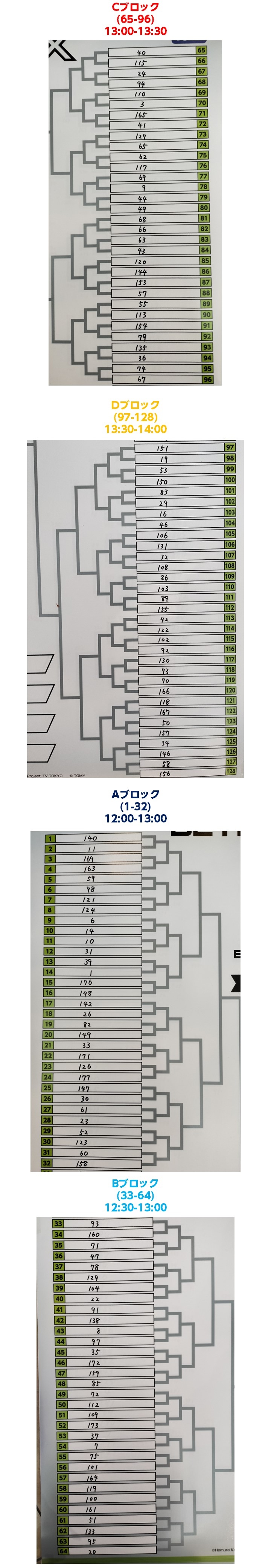 ・どのブロックになるかはトーナメント表に割り振られている番号をご確認ください