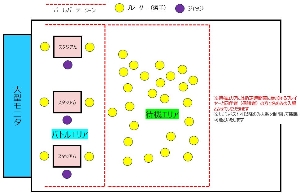 ※待機エリアには指定時間帯に参加するプレイヤーと同伴者(保護者)の方1名のみの入場とさせていただきます