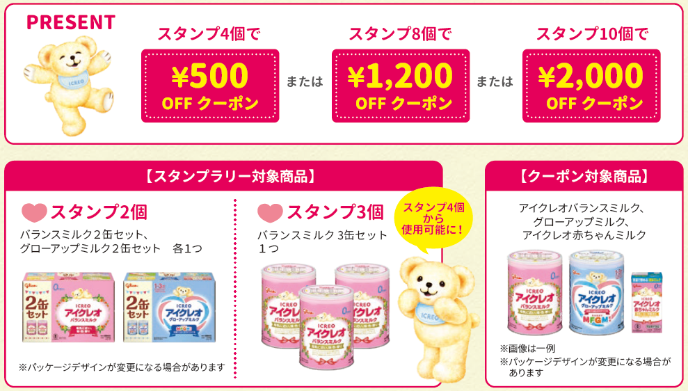 アイクレオ対象商品を購入して、スタンプを貯めて、ミルク商品をお得に購入しよう!