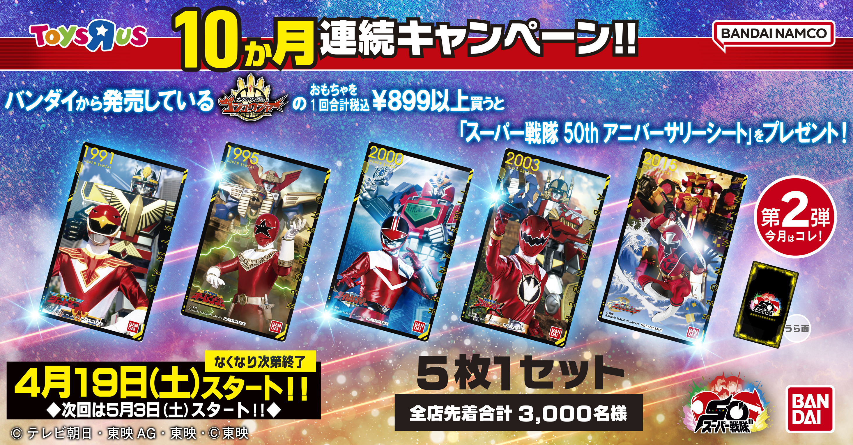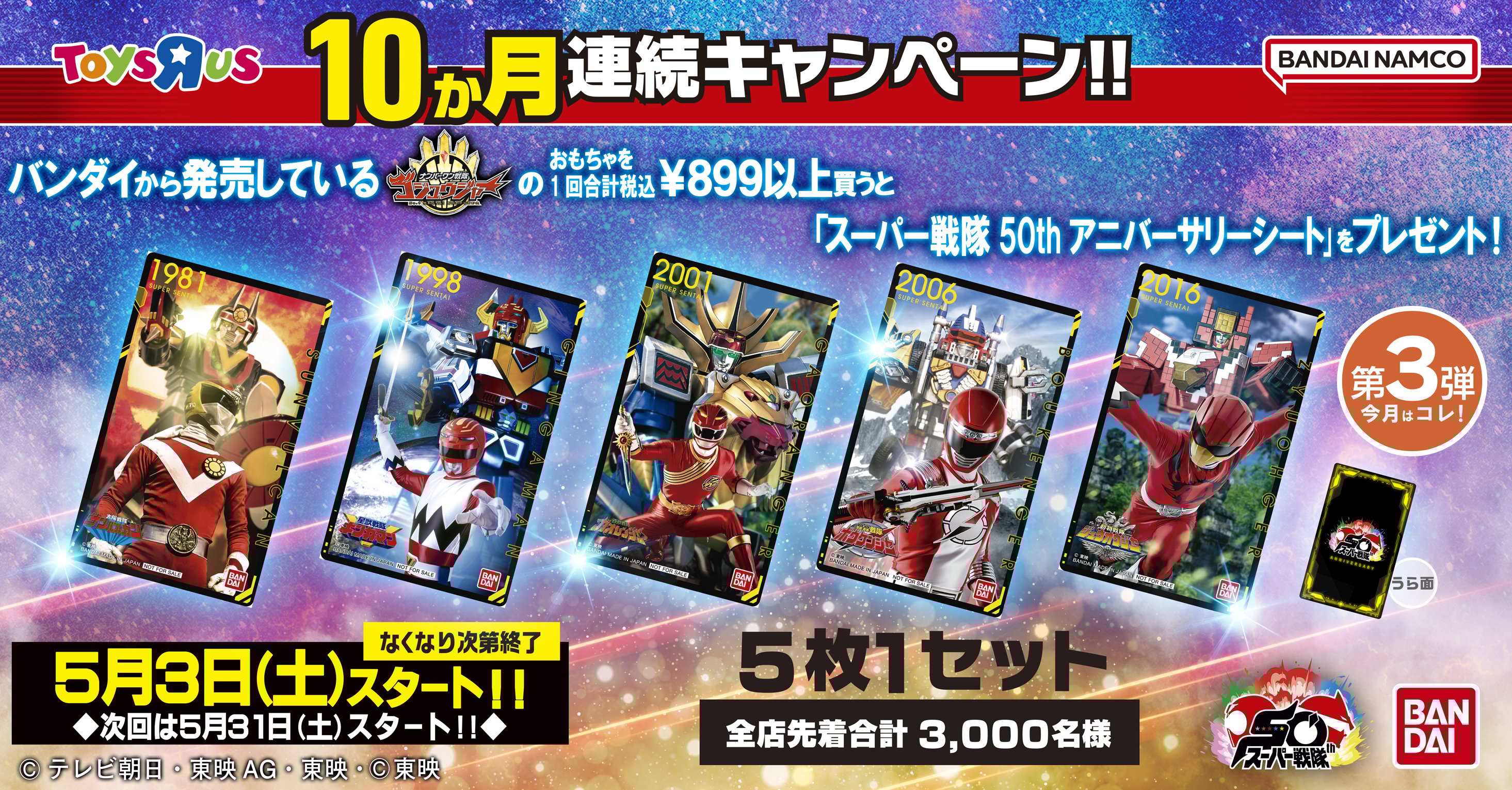 <第10弾>10ヶ月連続キャンペーン!「スーパー戦隊50thアニバーサリーシート」プレゼント!!