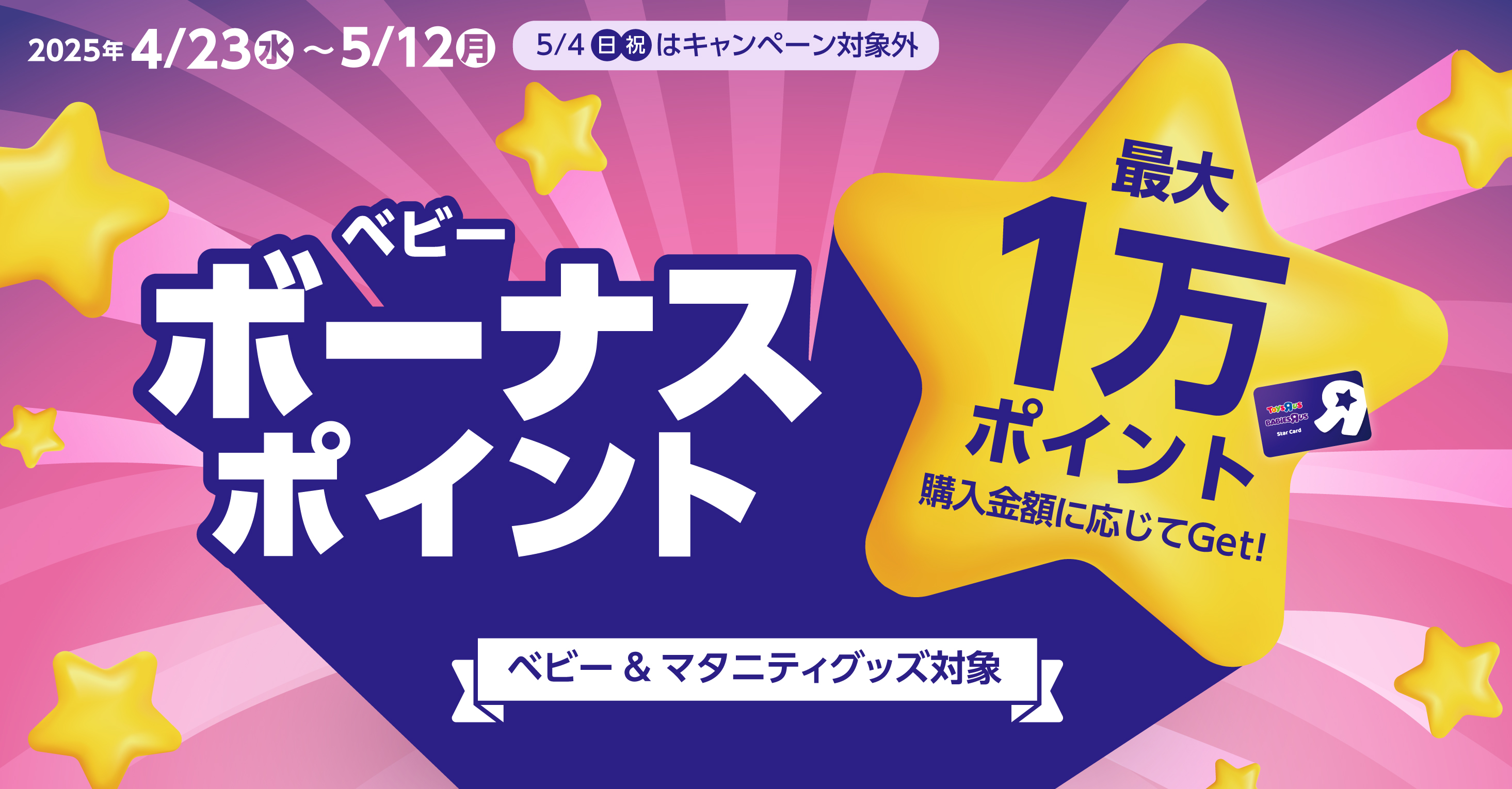 全国のトイザらス・ベビーザらス店舗(一部対象外店舗あり)※京都河原町OPA店、野田店、ダイバーシティ東京 プラザ店、BRU錦糸町店、ららぽーと福岡店 、オンラインストア対象外