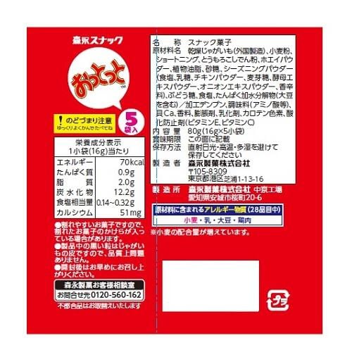 乾燥じゃがいも(外国製造)、小麦粉、ショートニング、とうもろこしでん粉、ホエイパウダー、植物油脂、砂糖、シーズニングパウダー(食塩、乳糖、チキンパウダー、麦芽糖、酵母エキスパウダー、オニオンエキスパウダー、香辛料)、ぶどう糖、食塩、たんぱく加水分解物(大豆を含む)/加工デンプン、調味料(アミノ酸等)、貝Ca、香料、膨脹剤、乳化剤、カロテン色素、酸化防止剤(ビタミンE、ビタミンC)