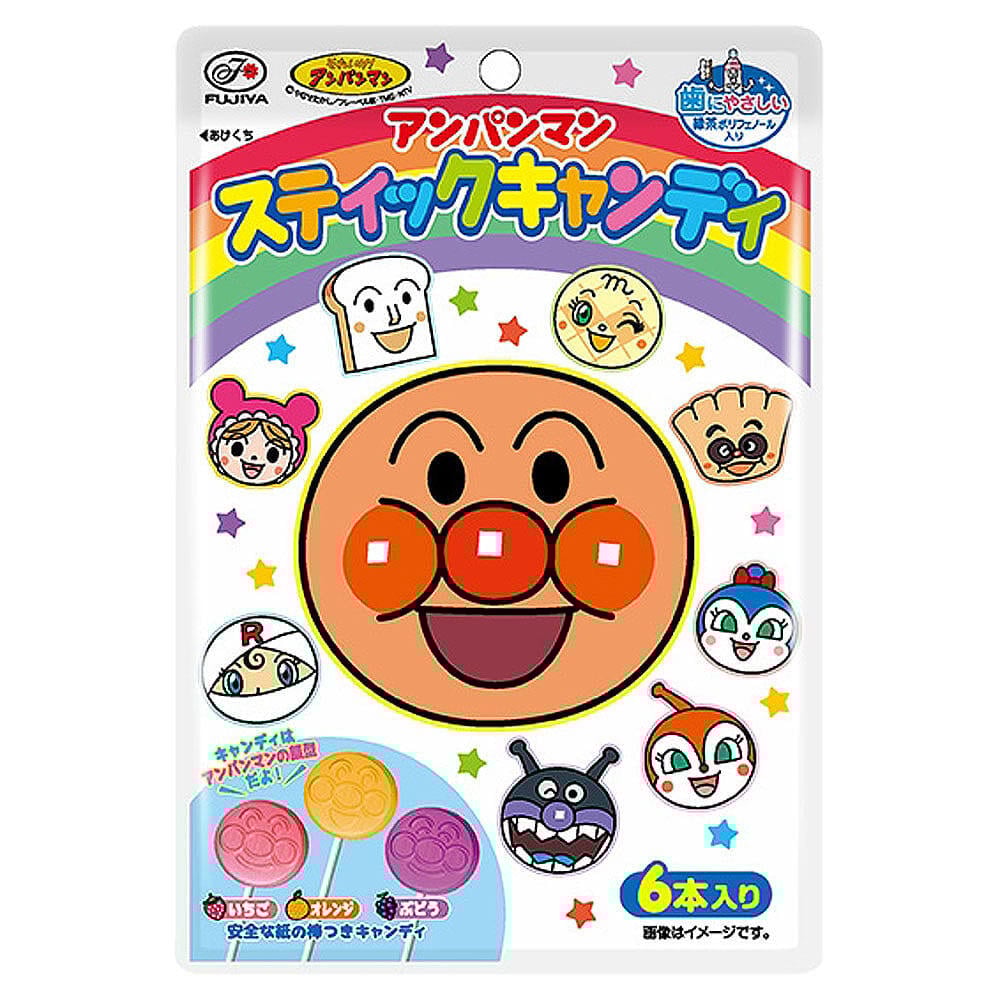 アンパンマン スティックキャンディ 6本 顔型の棒つきあめ オレンジ ぶどう いちご ポリフェノール お菓子