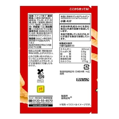 小麦粉(国内製造)、植物油、でん粉、えび、砂糖、食塩 / 膨脹剤、調味料(アミノ酸等)、甘味料(甘草)