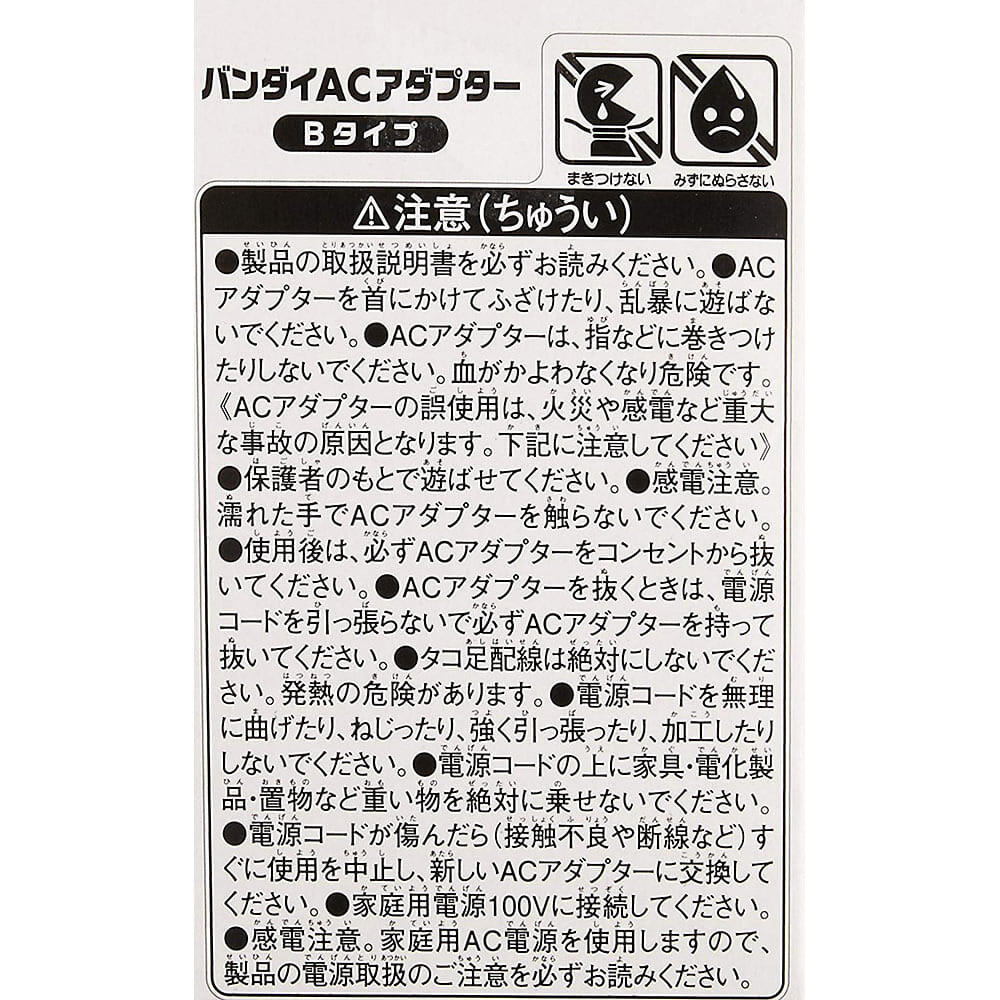 コンセントから電源がとれるACアダプター商品がラインナップしました。「バンダイACアダプターBタイプ」は、1.5歳からでも使用可能なACアダプターです。ACアダプターBタイプ対応のバンダイ商品を、面倒な電池交換を気にせずコンセントからの電源でたっぷり遊べます。